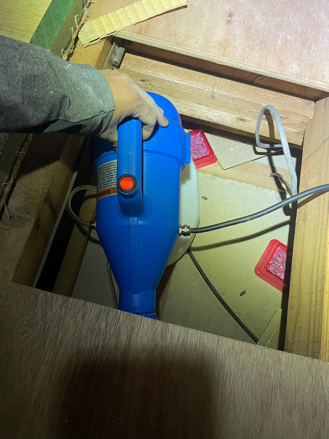 最後に、糞清掃や殺菌・消毒、マーキング消臭、ノミ・ダニ駆除、毒エサ・トラップ設置といった残りの作業を行い、駆除~再発防止までの工程が全て終了します。