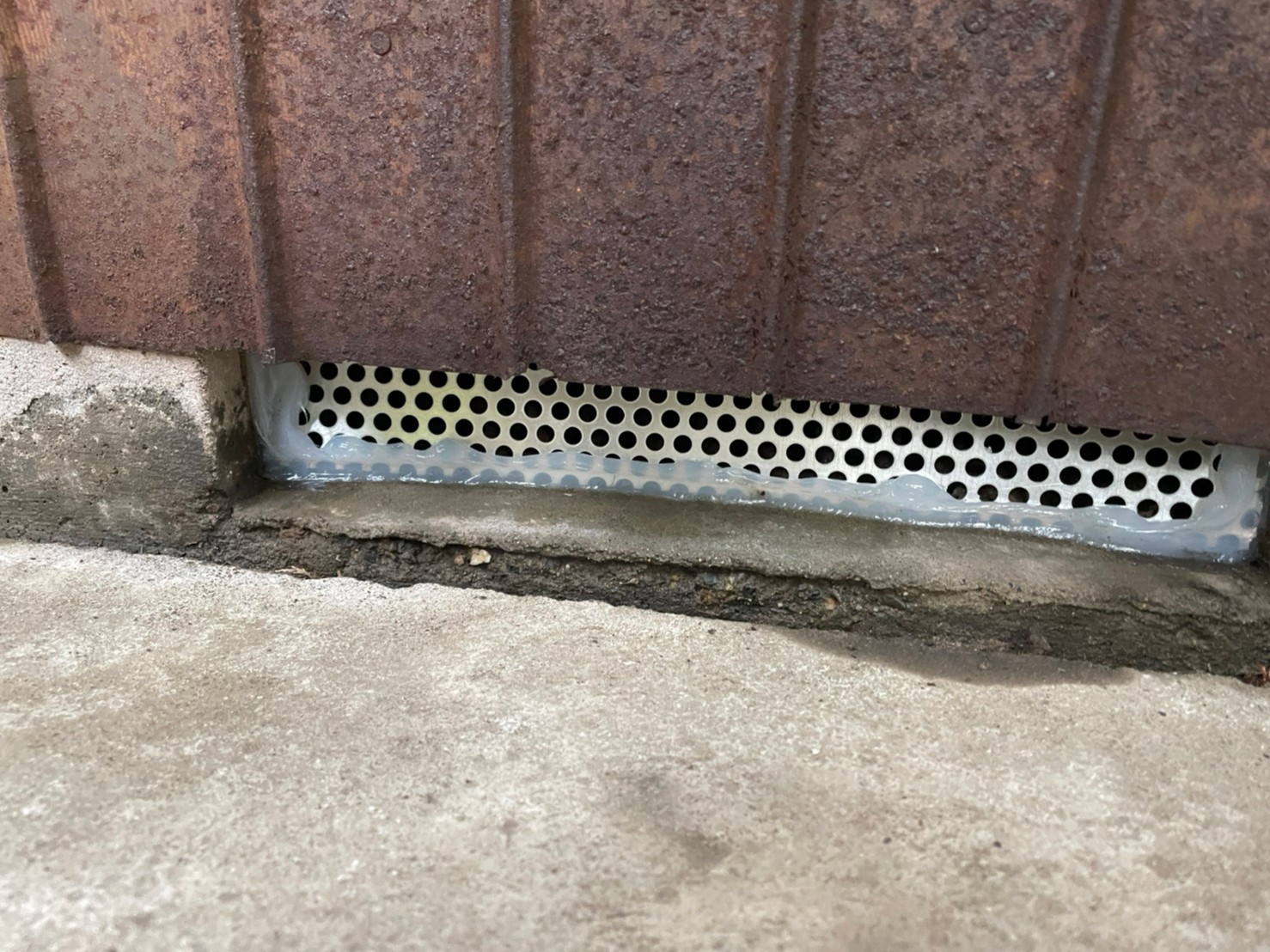 続いて、ネズミの再侵入を防ぐために、パンチングメタルや金網、コーキング剤などを用いて侵入経路の封鎖を行います。
