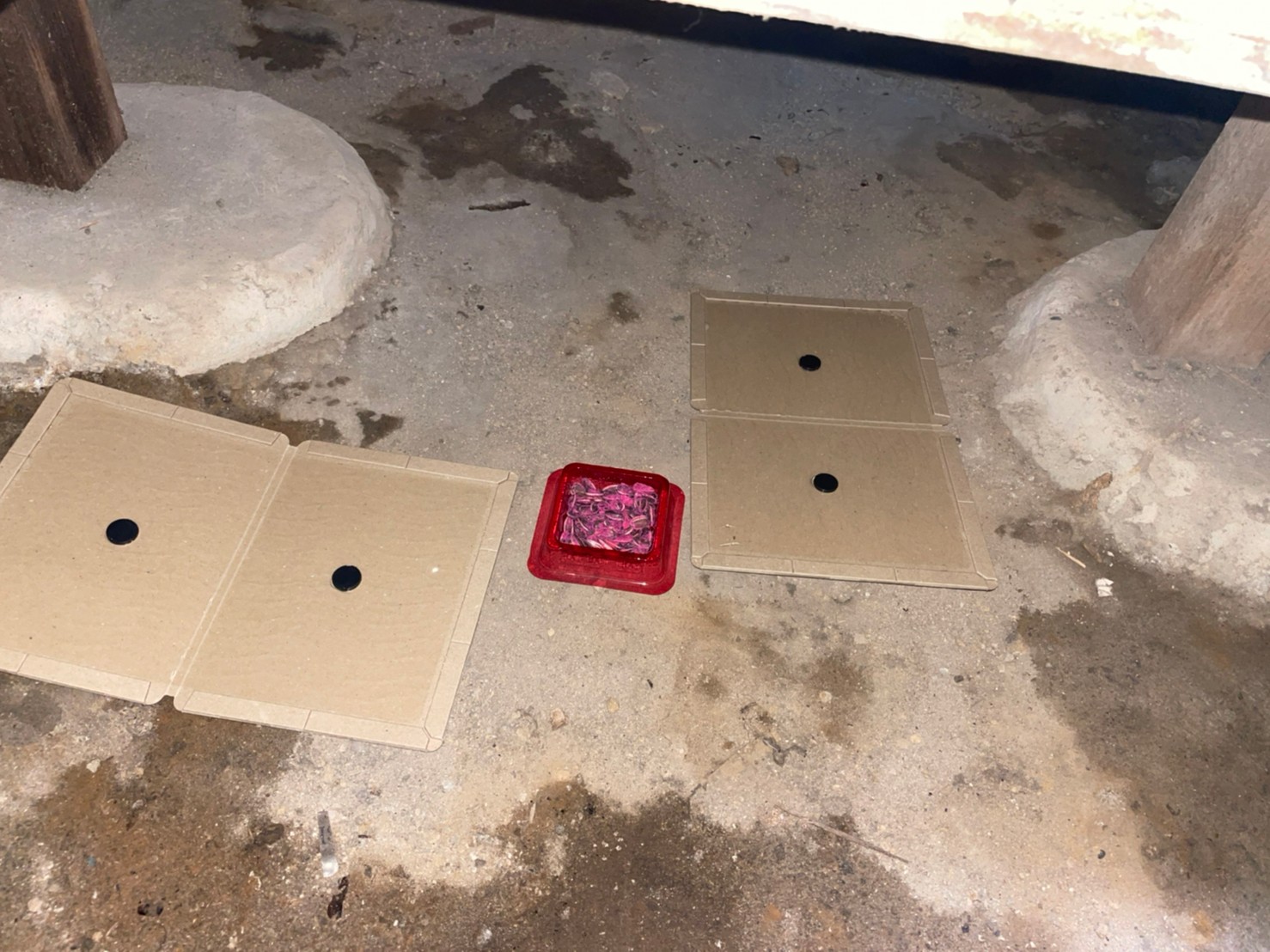最後に、糞清掃や殺菌・消毒、マーキング消臭、ノミ・ダニ駆除、毒エサ・トラップ設置といった残りの作業を行い、駆除~再発防止までの工程が全て終了します。