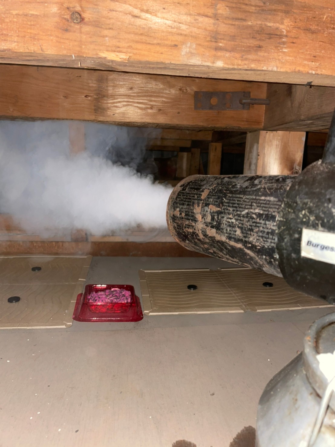 まずは、燻煙剤と呼ばれる薬剤を天井裏や床下に投入することで、ネズミを追い出していきます。