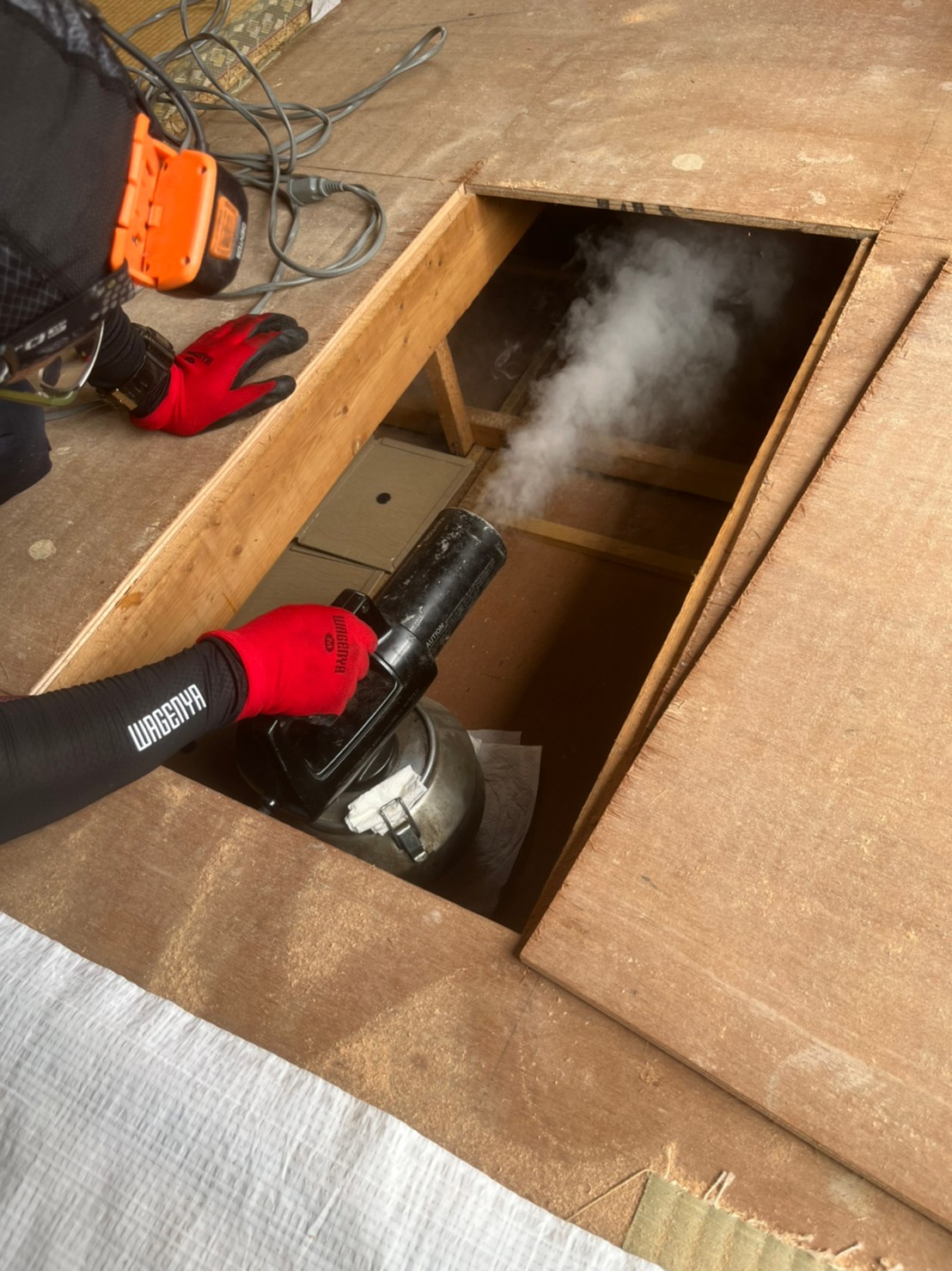 まずは、燻煙剤と呼ばれる薬剤を天井裏や床下に投入することで、ネズミを追い出していきます。