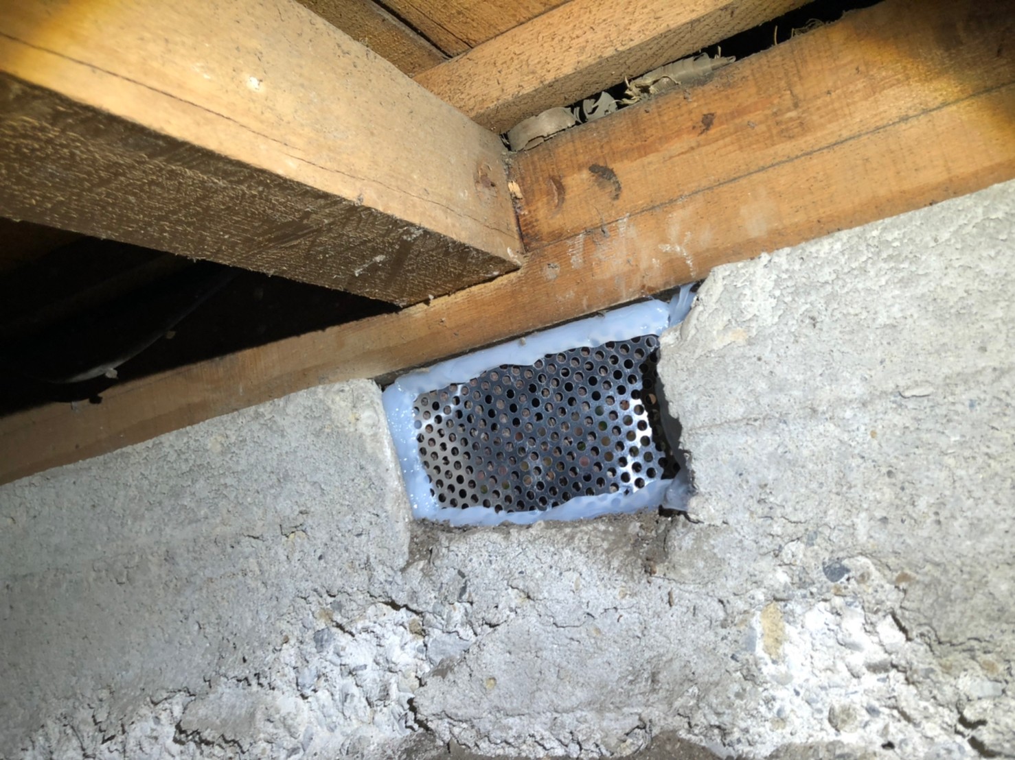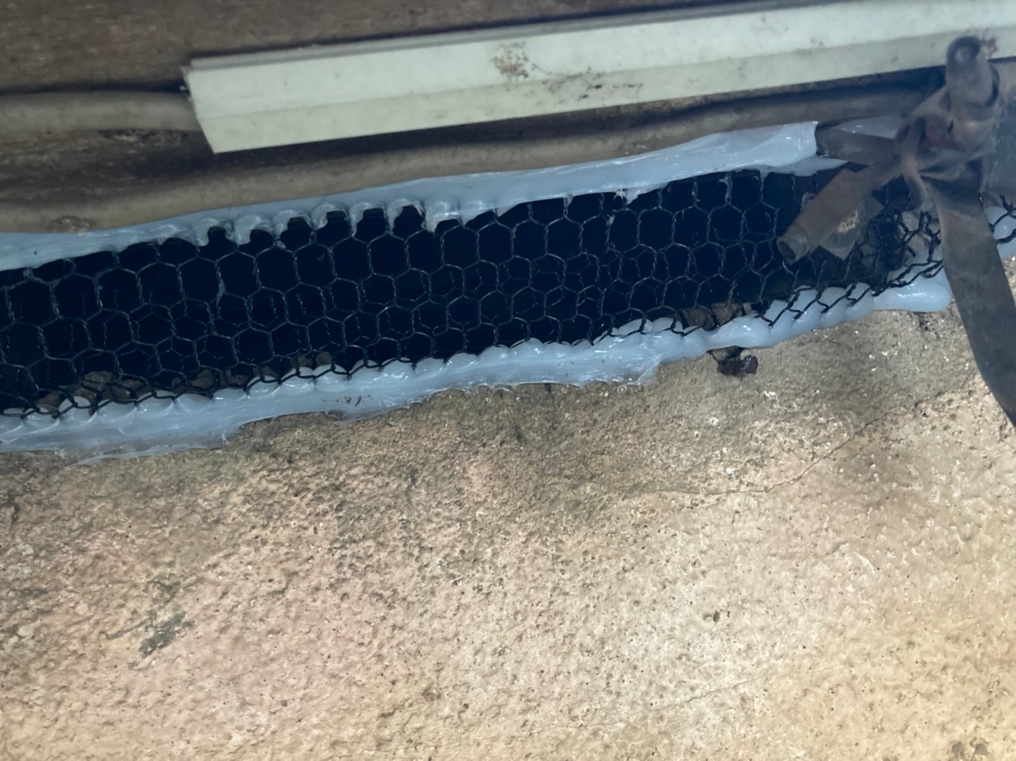 続いて、ネズミの再侵入を防ぐために、パンチングメタルや金網、コーキング剤などを用いて侵入経路の封鎖を行います。