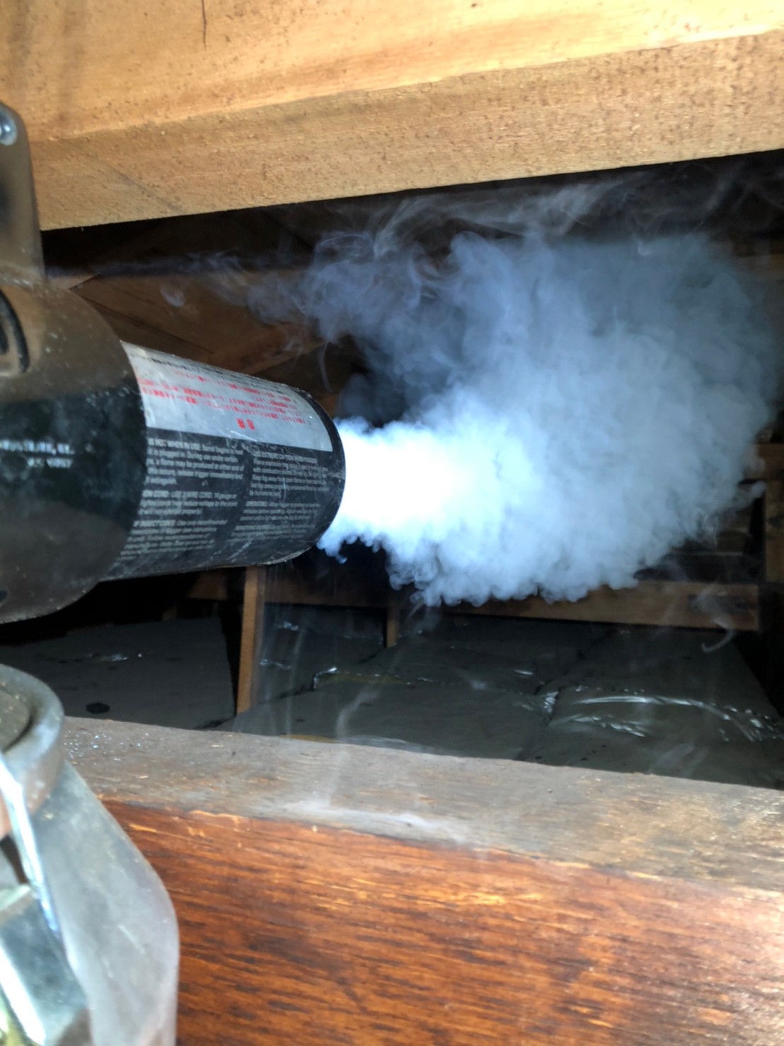 まずは、燻煙剤を使って屋内に潜んでいるネズミを追い出します。