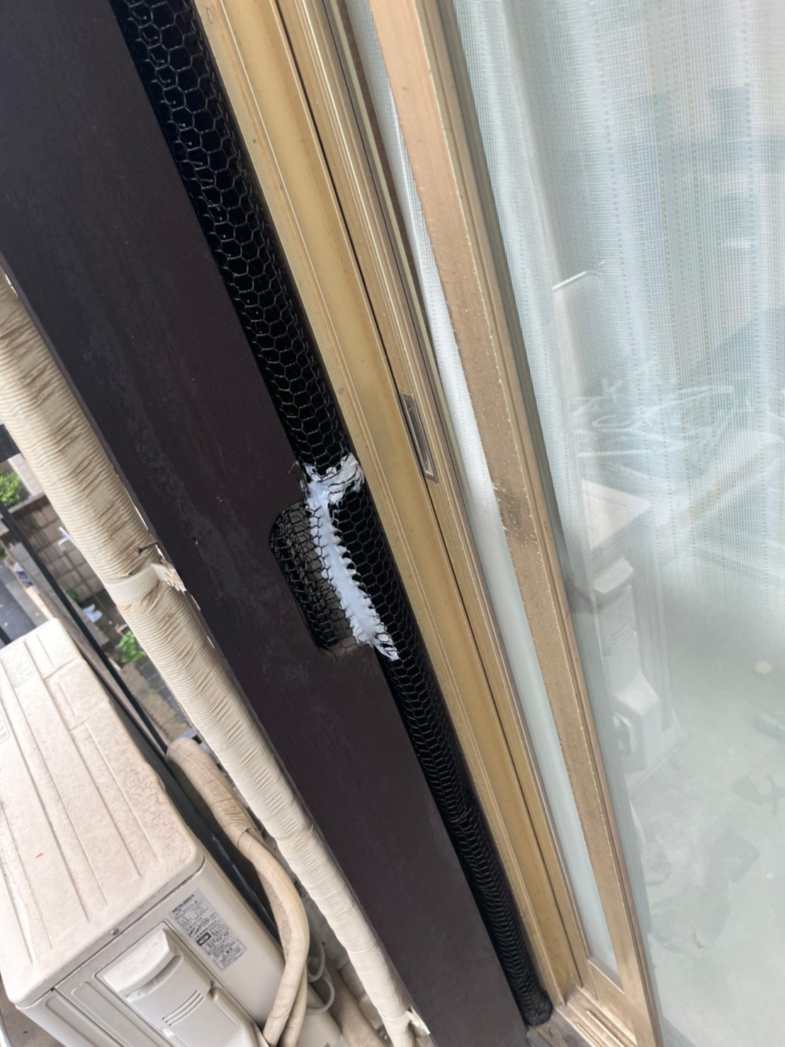 続いて、パンチングメタルや金網、コーキング剤などを用いて、あらゆる侵入経路を封鎖していきます。これによりネズミに限らず、他の害獣の再侵入も防ぐことができます。
