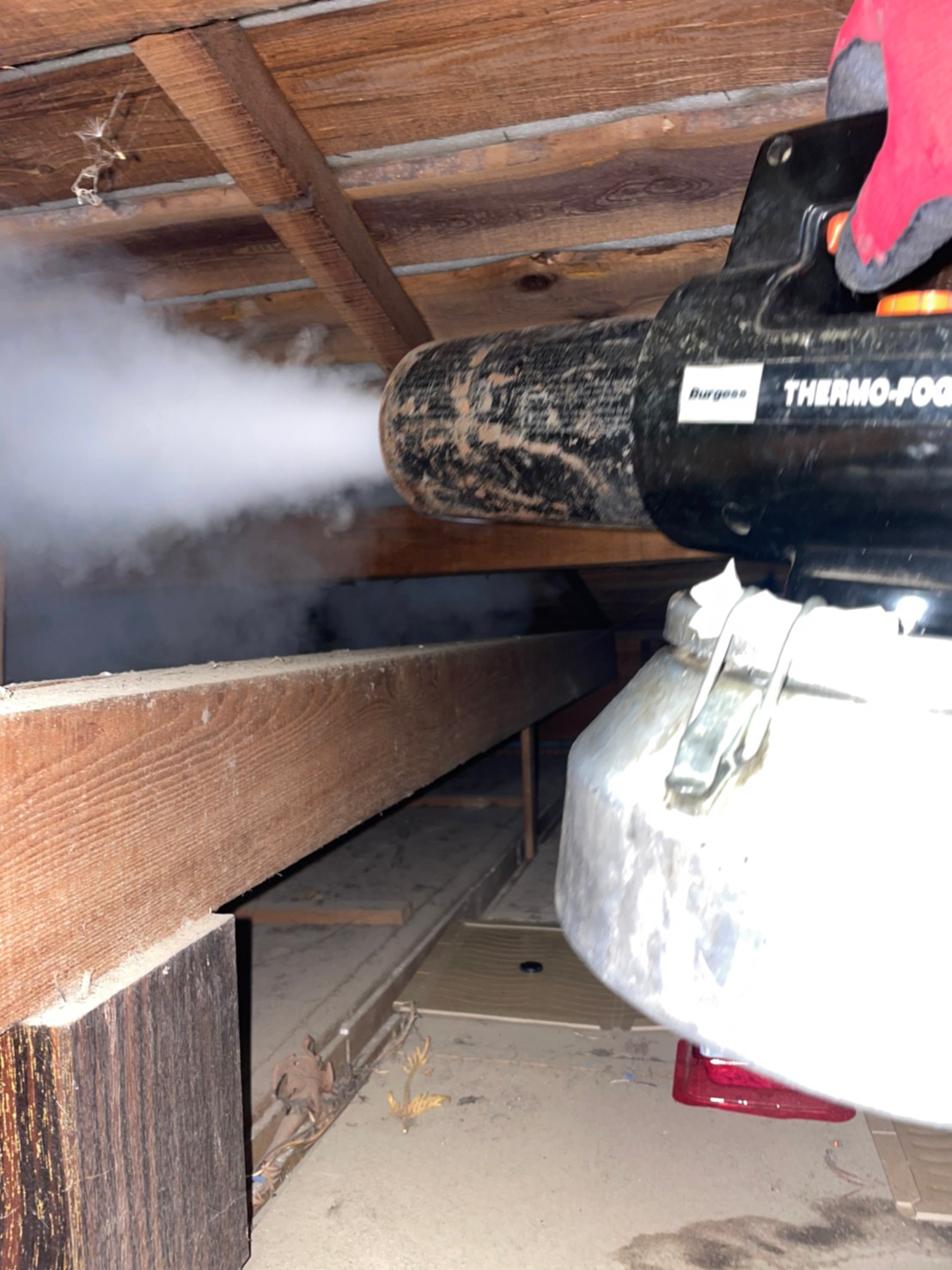 まずは、燻煙剤と呼ばれる薬剤を天井裏や床下に投入することで、ネズミを追い出していきます。
