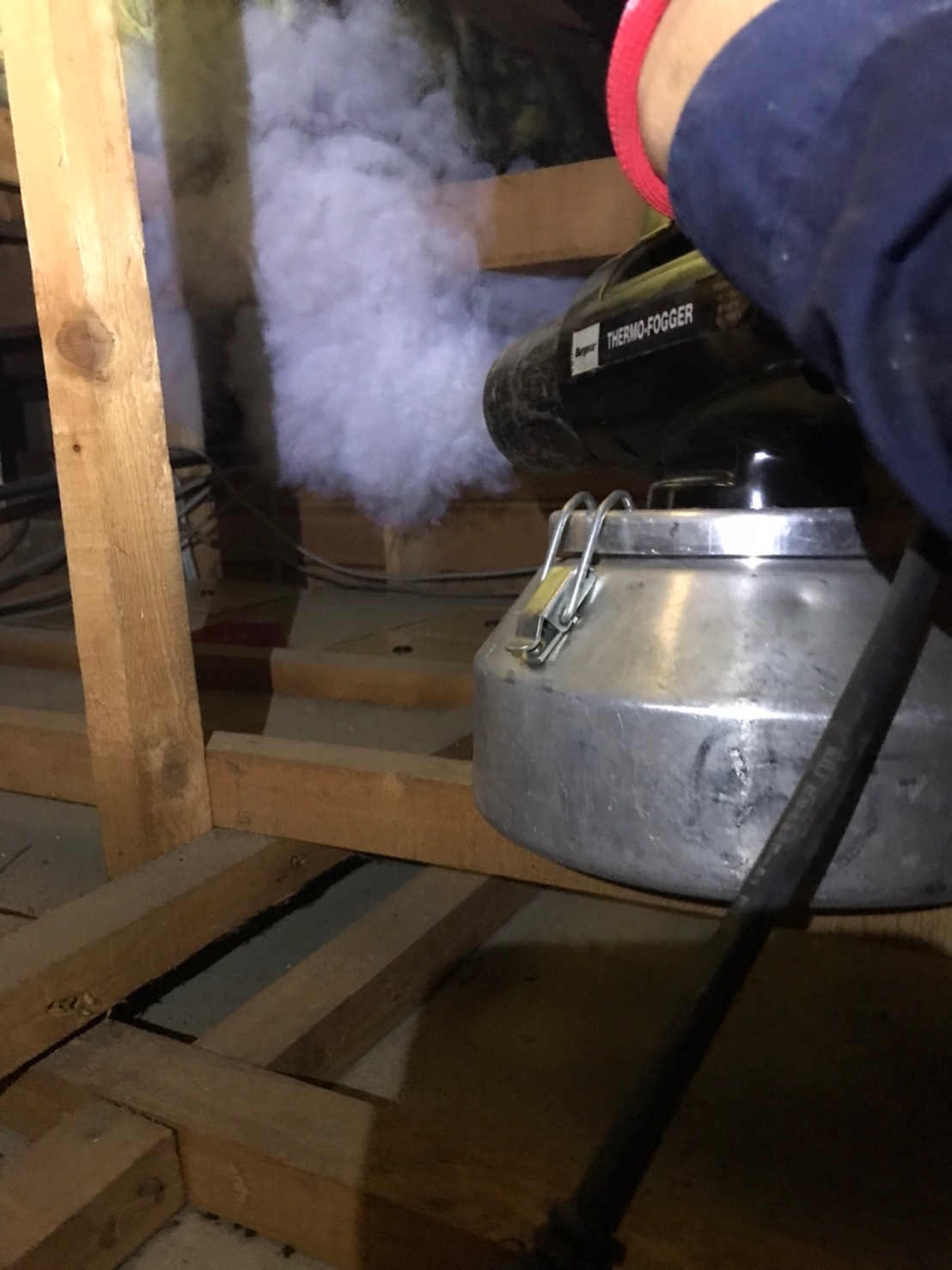 まずは、燻煙剤を使って屋内に潜んでいるハクビシンを追い出します。