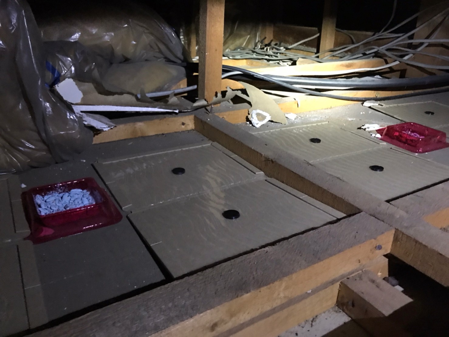 最後に、糞清掃や殺菌・消毒、マーキング消臭、ノミ・ダニ駆除、毒エサ・トラップ設置といった残りの作業を行い、駆除~再発防止までの工程が全て終了します。