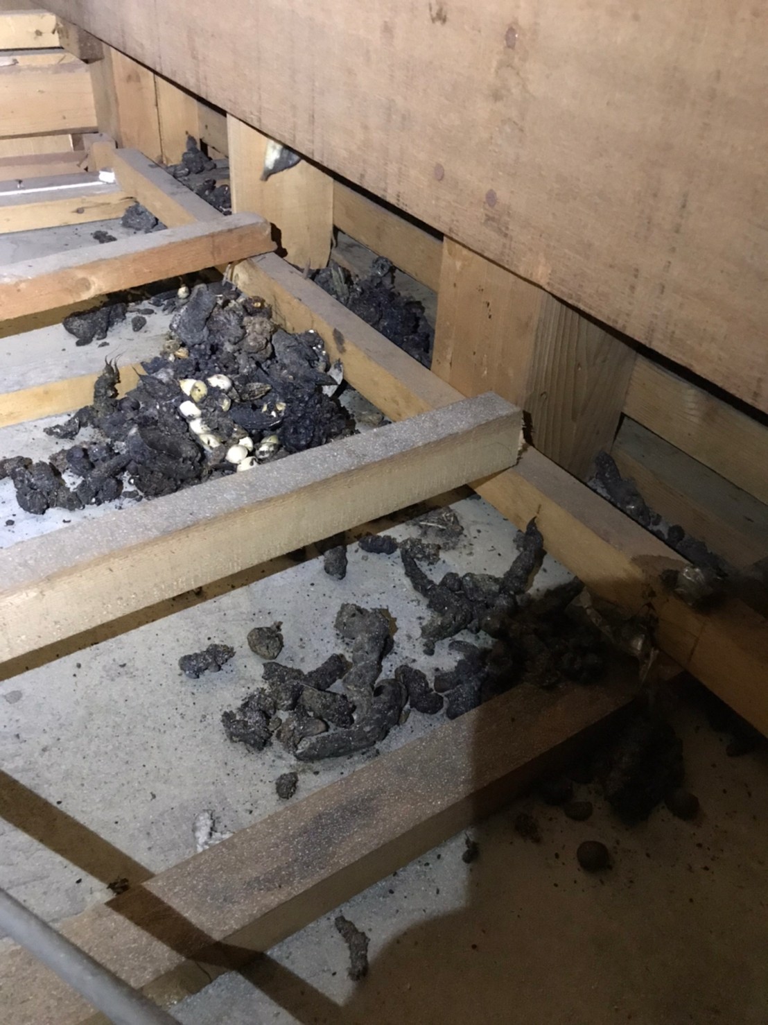 ハクビシンの住処となってしまった屋根裏は、断熱材がボロボロに荒らされたり、大量の糞尿で汚されたりするため、大変不衛生な状態となります。それが原因で人間の健康被害を招くこともあります。