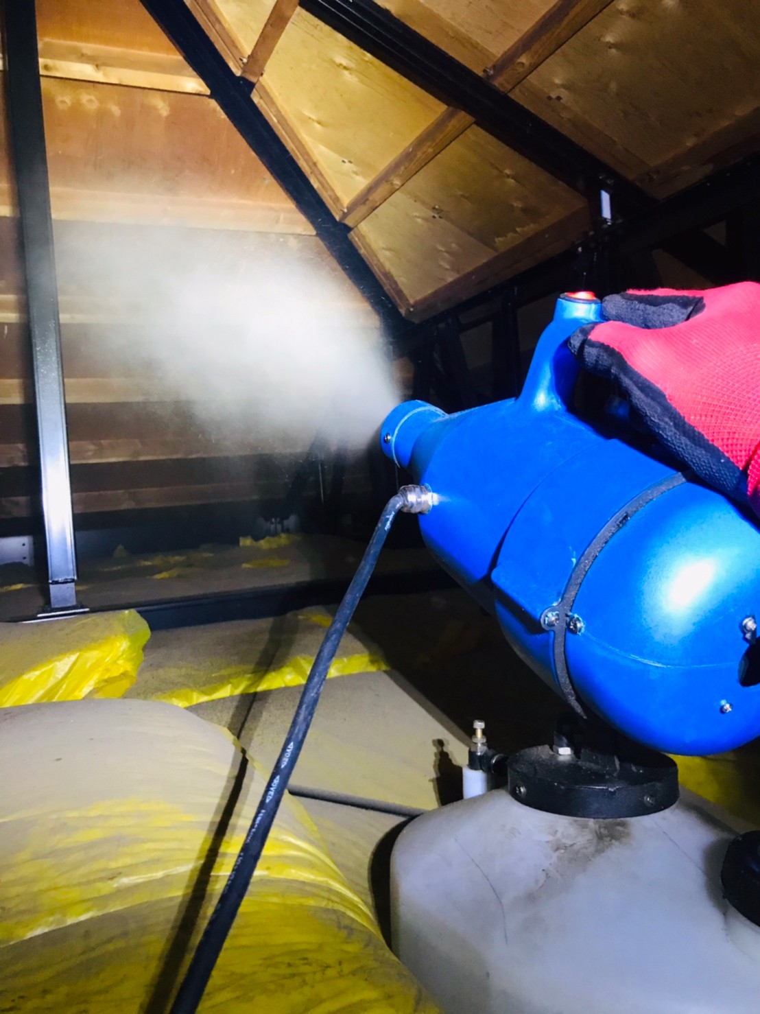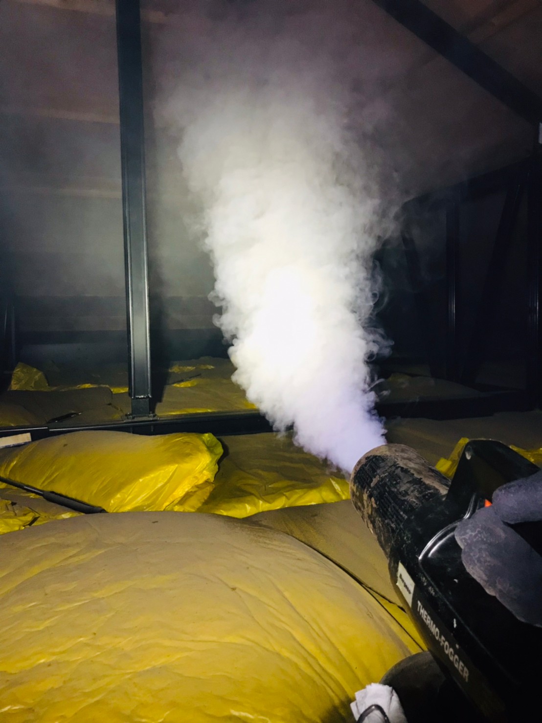 まずは、燻煙剤を使って屋内に潜んでいるコウモリを追い出します。