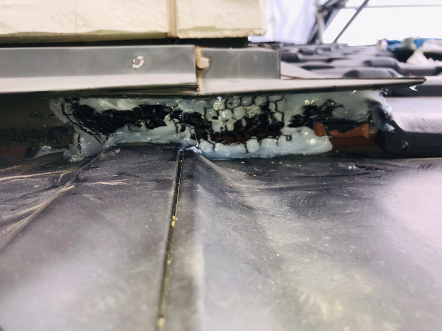 続いて、パンチングメタルや金網、コーキング剤などを用いて、あらゆる侵入経路を封鎖していきます。これによりコウモリに限らず、他の害獣の再侵入も防ぐことができます。