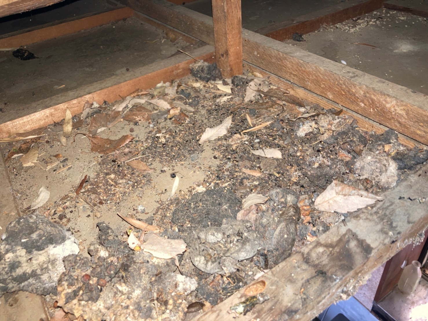 ハクビシンは同じ場所に「ため糞」をする習性があります。同じ場所に排泄をし続けると、木材が腐ったり部屋まで悪臭がしたりするので生活にも支障をきたします。さらに、ハクビシンの糞尿には、ウイルスや寄生虫が潜んでいるため危険です。
