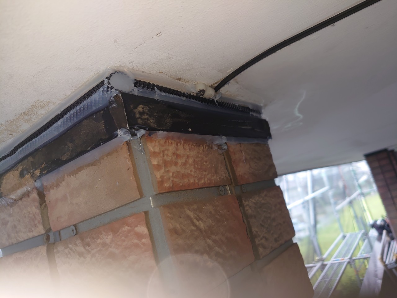 続いて、コウモリの再侵入を防ぐために、パンチングメタルや金網、コーキング剤などを用いて侵入経路の封鎖を行います。