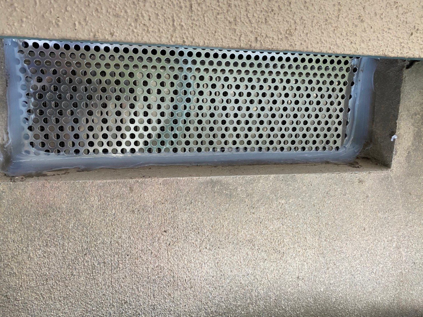 続いて、ネズミの再侵入を防ぐために、パンチングメタルや金網、コーキング剤などを用いて侵入経路の封鎖を行います。