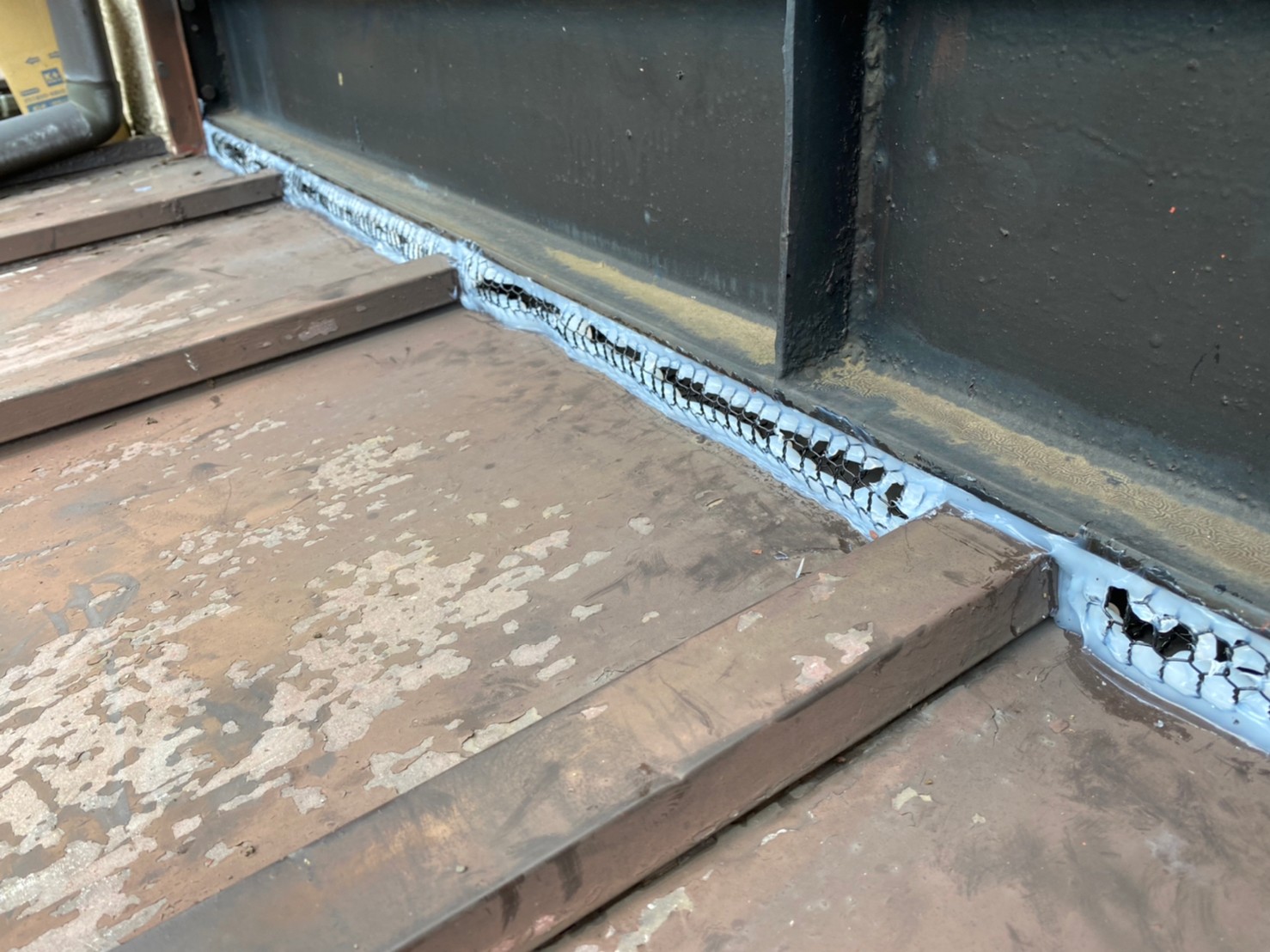 続いて、パンチングメタルや金網、コーキング剤などを用いて、あらゆる侵入経路を封鎖していきます。これによりネズミに限らず、他の害獣の再侵入も防ぐことができます。