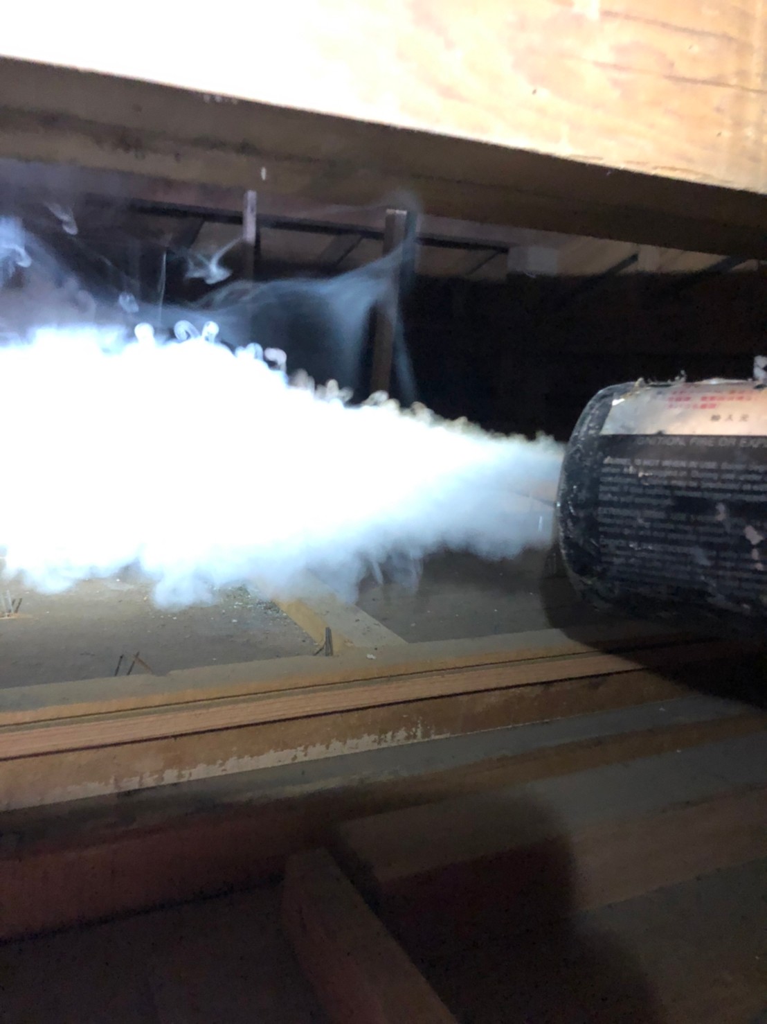 まずは、燻煙剤を使って屋内に潜んでいるハクビシンを追い出します。