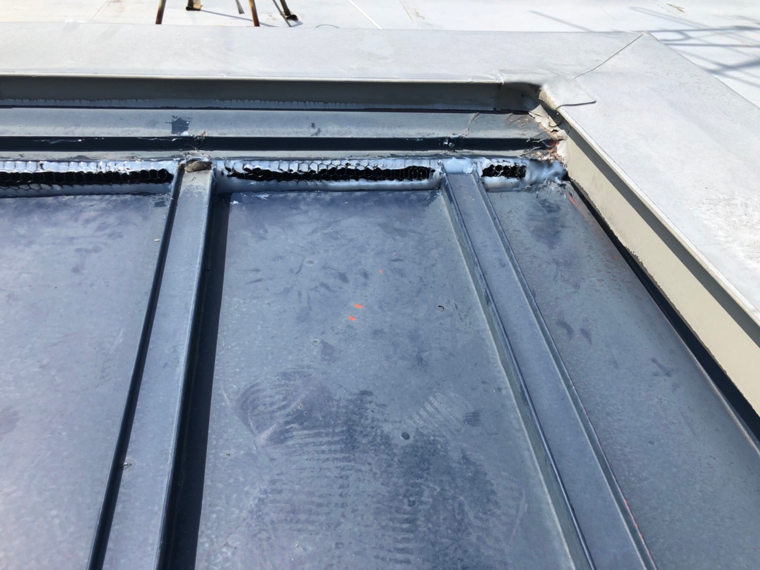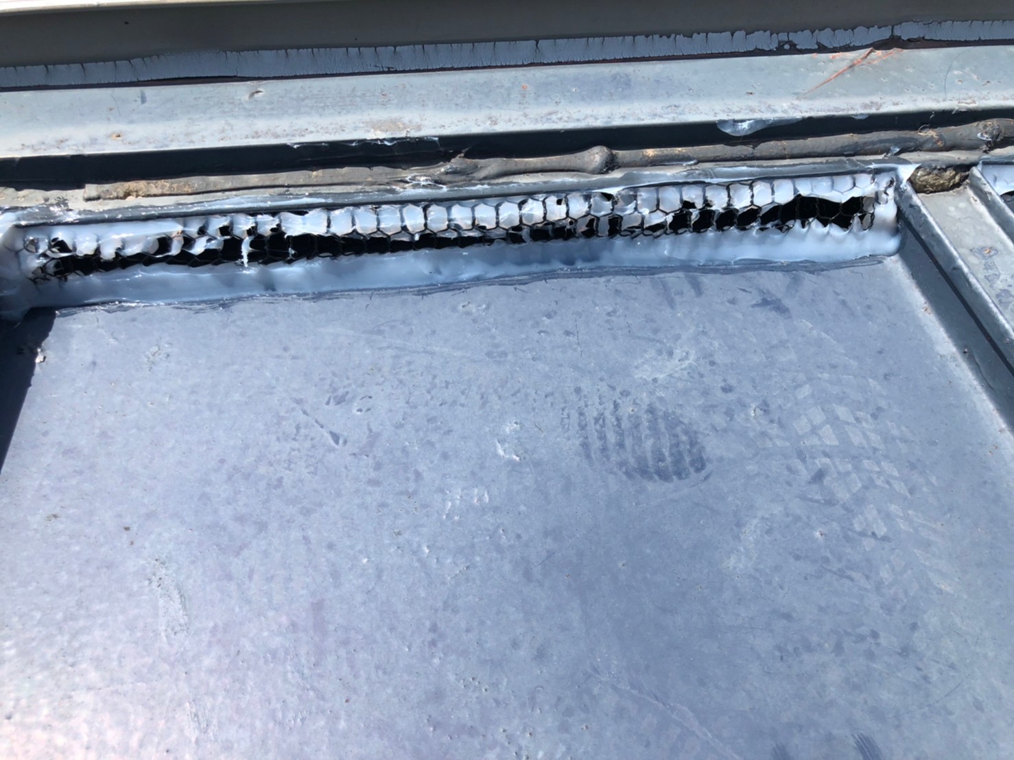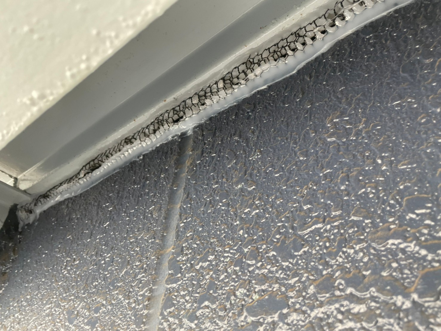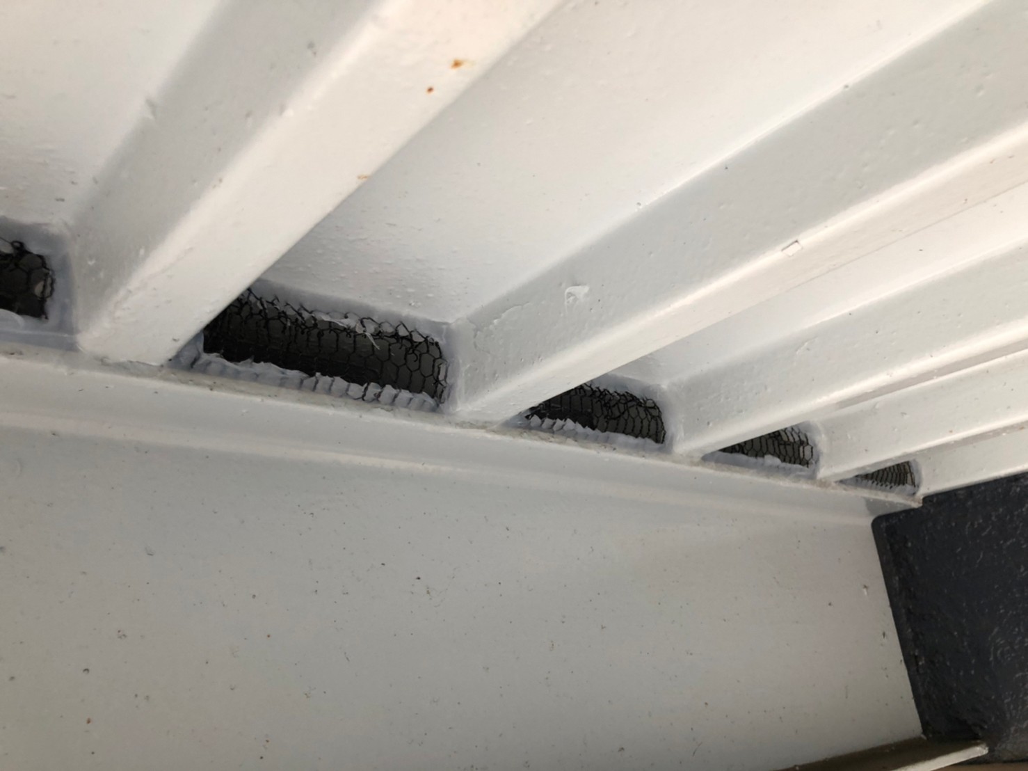 続いて、ネズミの再侵入を防ぐために、パンチングメタルや金網、コーキング剤などを用いて侵入経路の封鎖を行います。