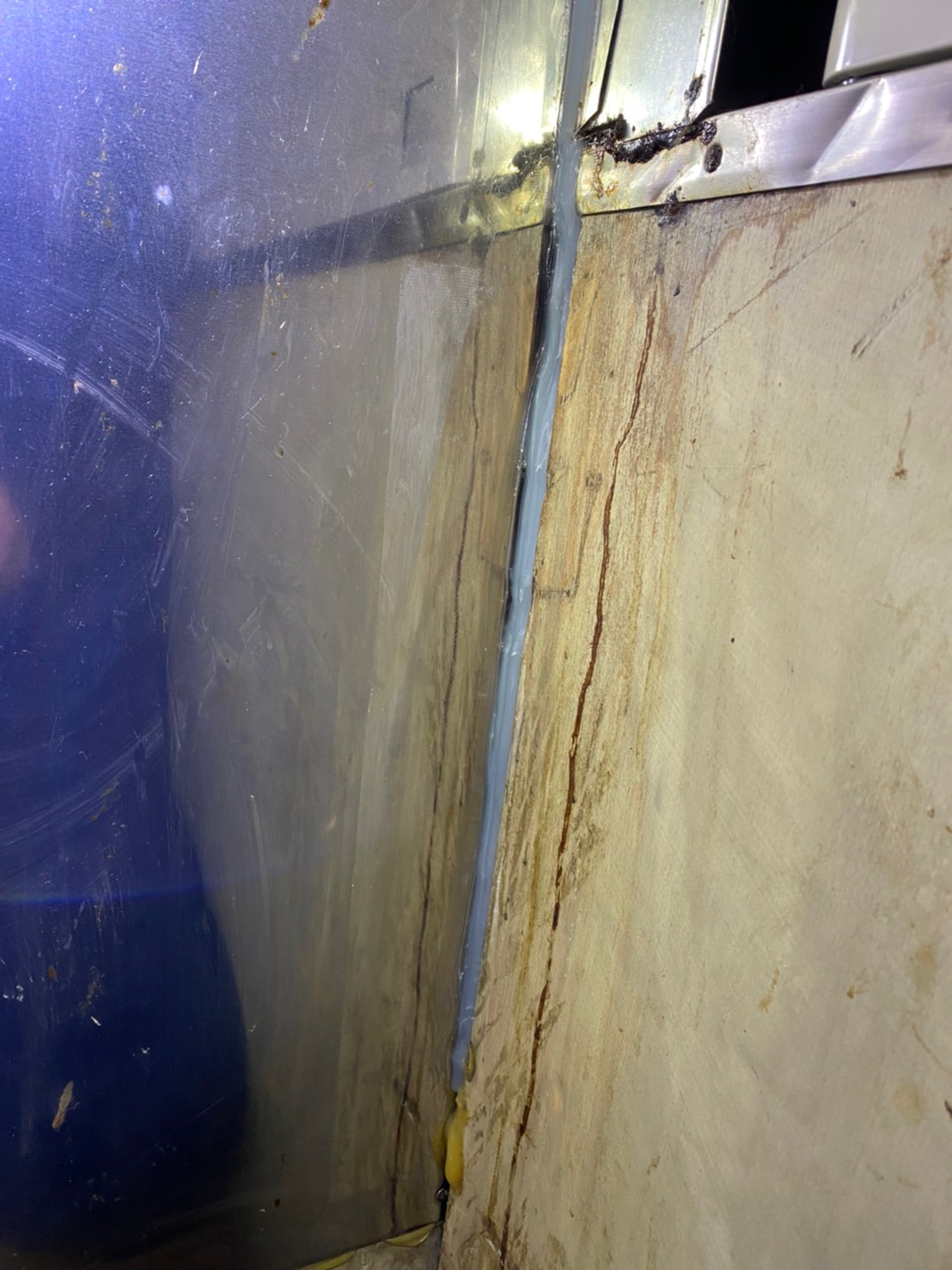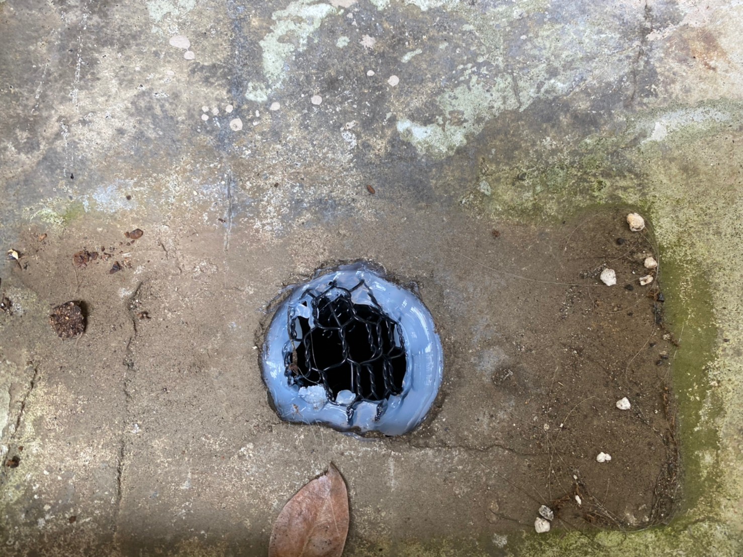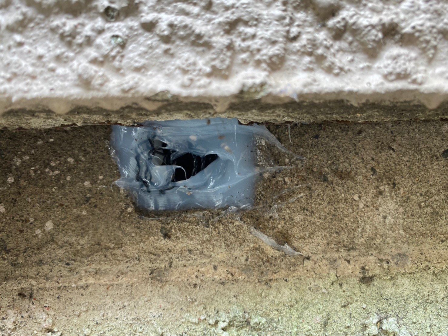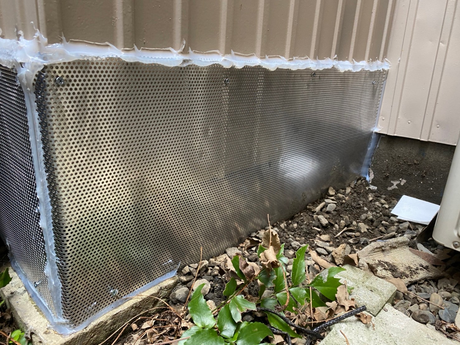 続いて、ネズミの再侵入を防ぐために、パンチングメタルや金網、コーキング剤などを用いて侵入経路の封鎖を行います。