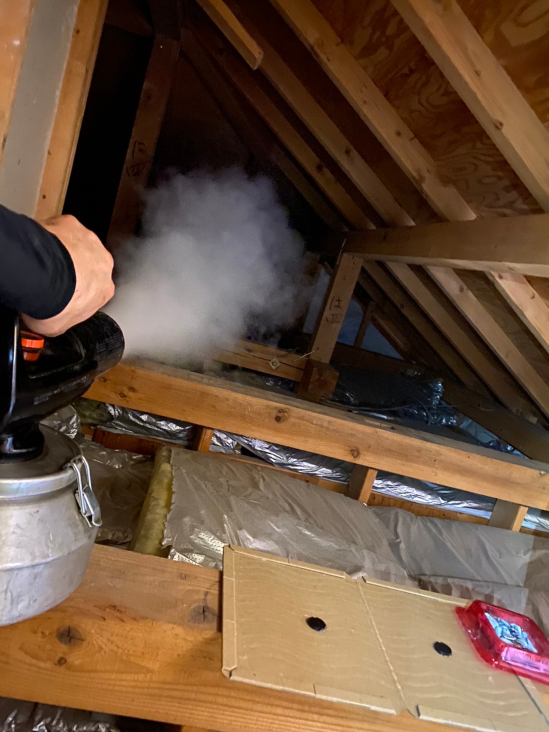 まずは、燻煙剤を使って屋内に潜んでいるネズミを追い出します。