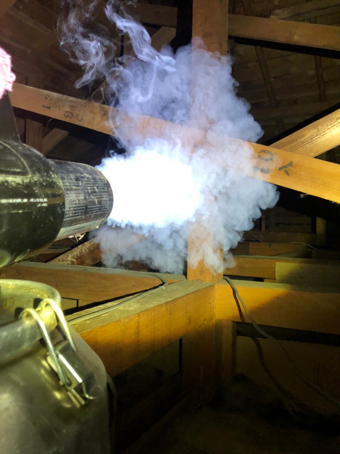 まずは、燻煙剤と呼ばれる薬剤を天井裏や床下に投入することで、ネズミを追い出していきます。