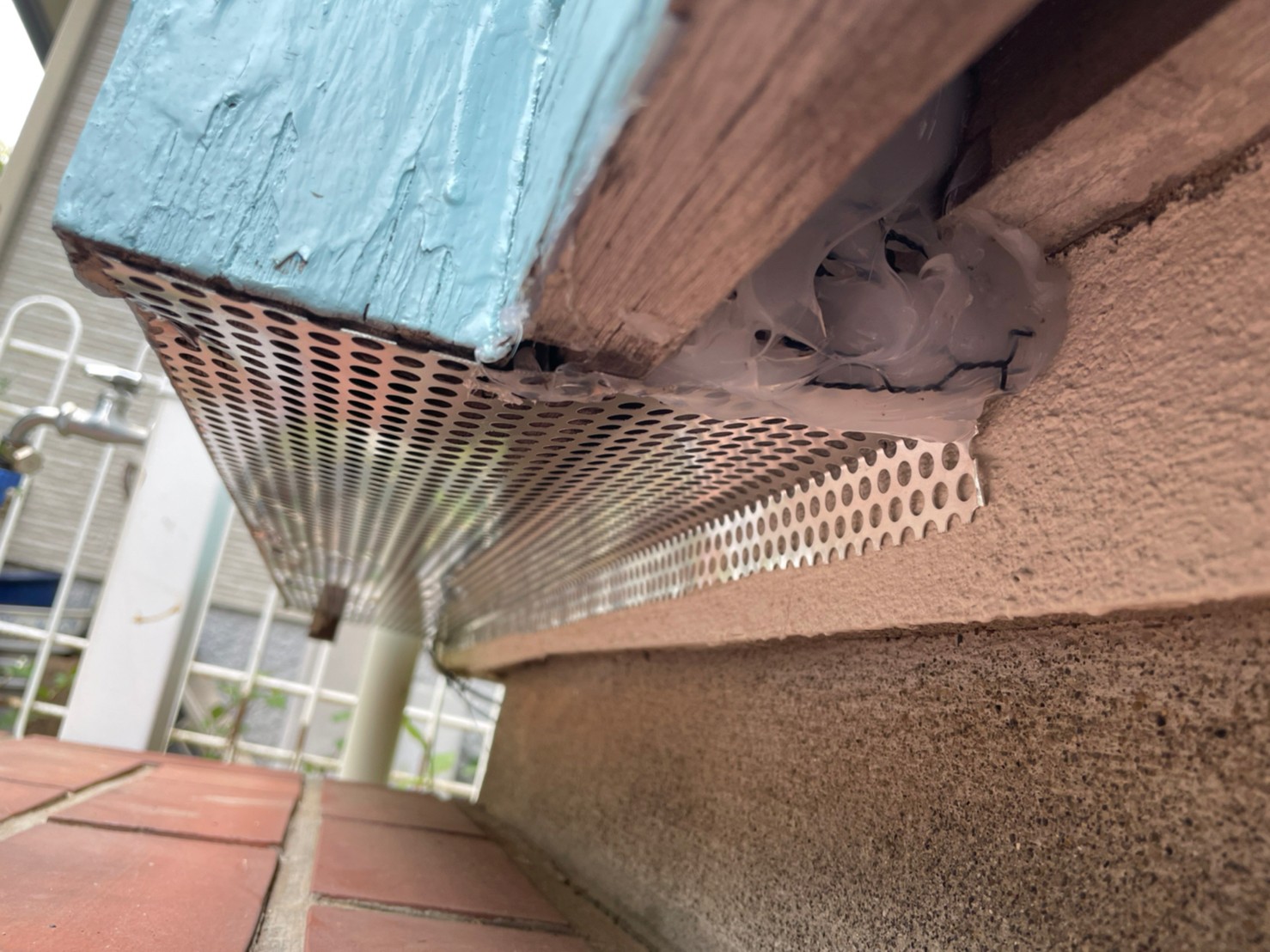 続いて、パンチングメタルや金網、コーキング剤などを用いて、あらゆる侵入経路を封鎖していきます。これによりネズミに限らず、他の害獣の再侵入も防ぐことができます。