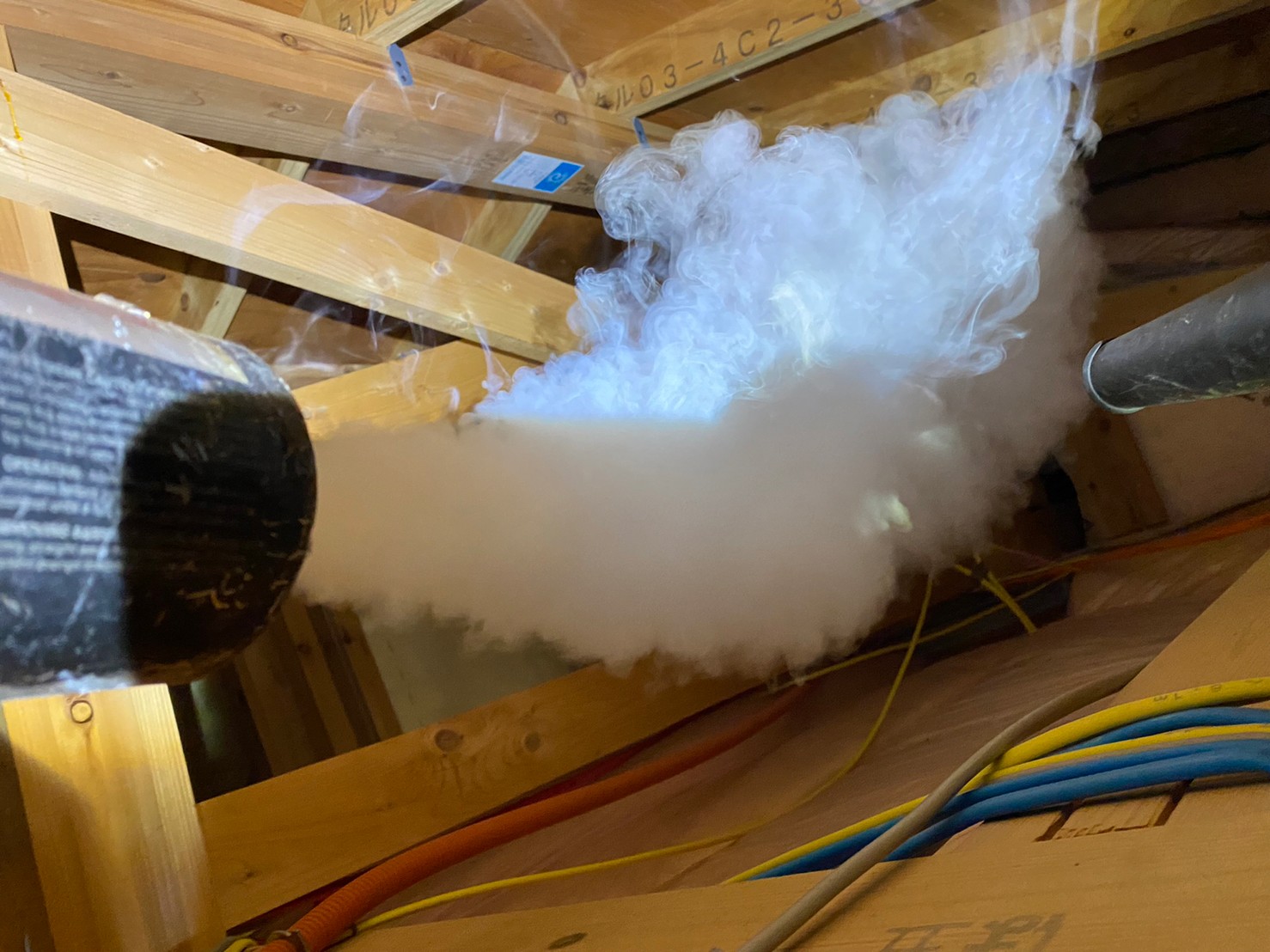 まずは、燻煙剤と呼ばれる薬剤を天井裏や床下に投入することで、コウモリを追い出していきます。