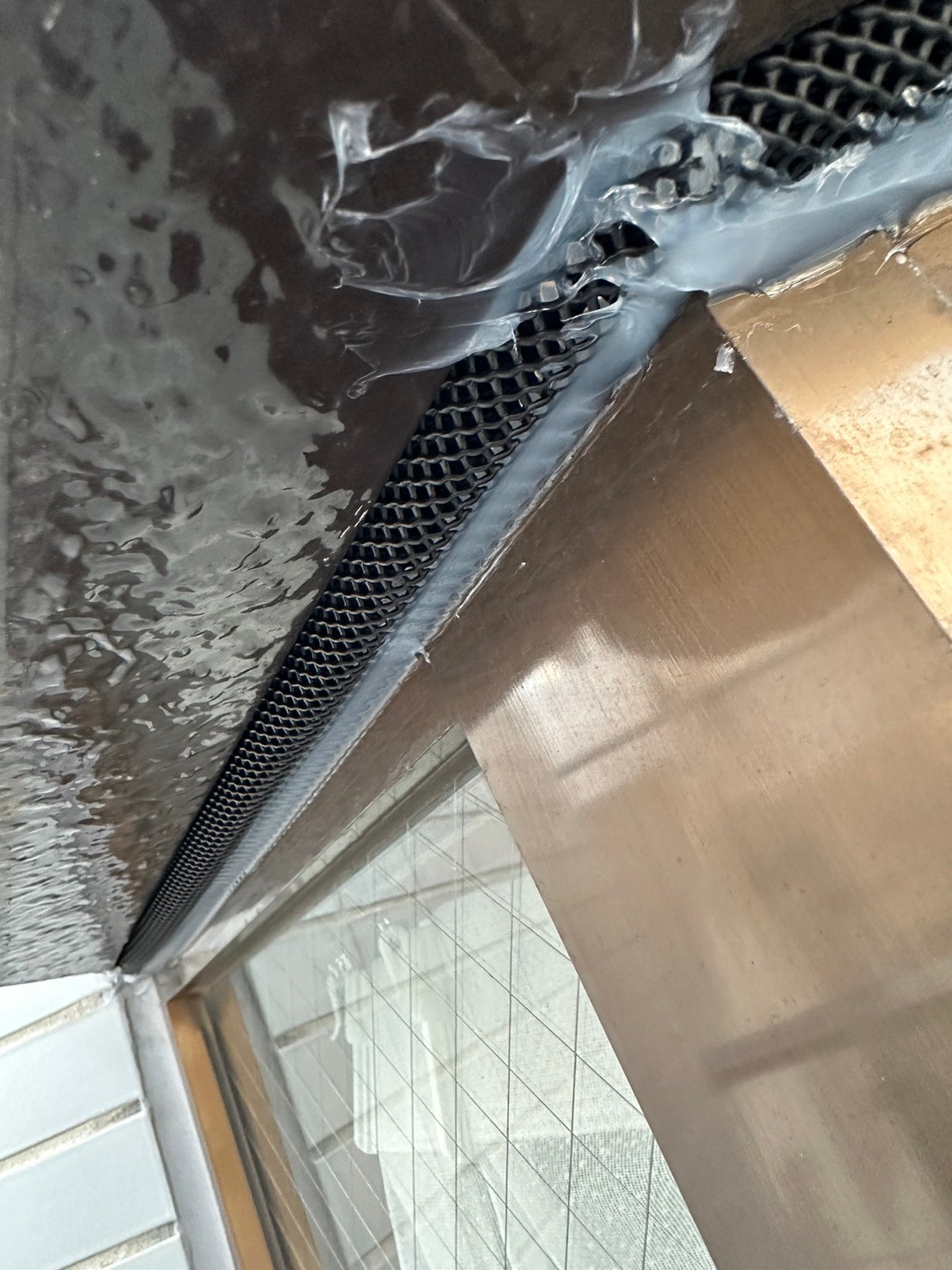 続いて、パンチングメタルや金網、コーキング剤などを用いて、あらゆる侵入経路を封鎖していきます。これによりコウモリに限らず、他の害獣の再侵入も防ぐことができます。