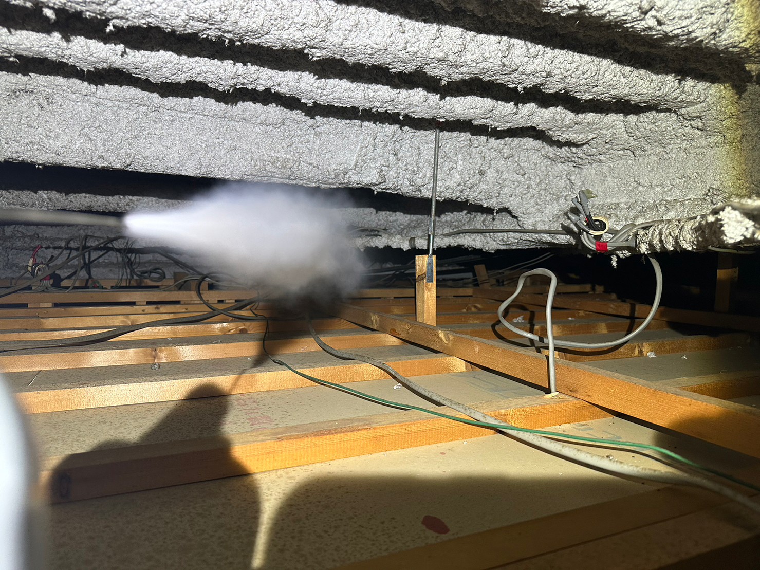 まずは、コウモリの巣がある場所に点検口を作成し、燻煙剤と呼ばれる薬剤を天井裏や床下に投入することで、コウモリを追い出していきます。
