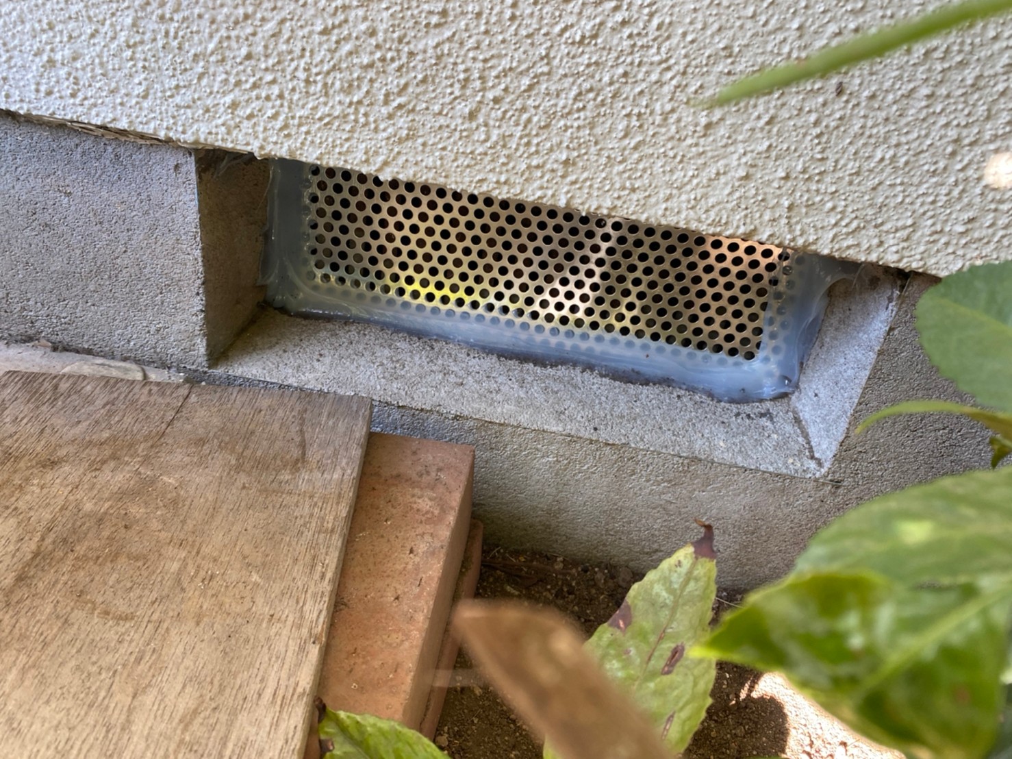 続いて、ネズミの再侵入を防ぐために、パンチングメタルや金網、コーキング剤などを用いて侵入経路の封鎖を行います。