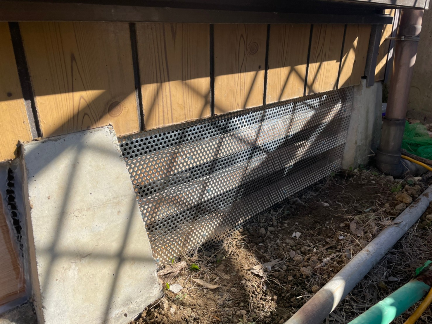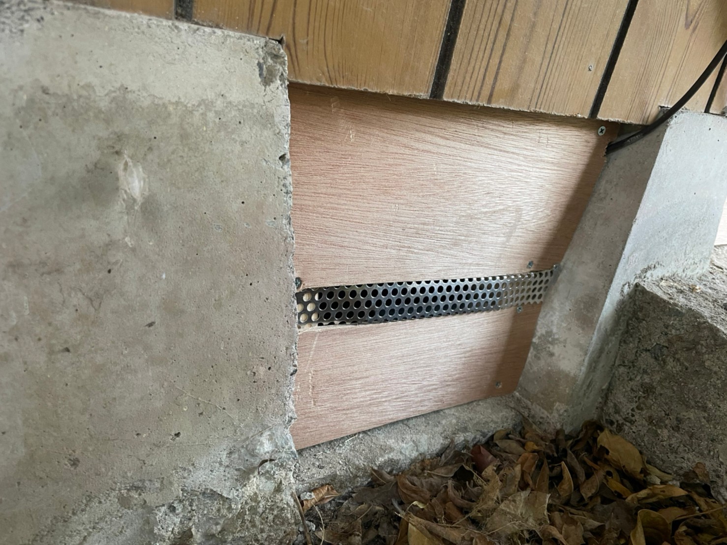 軒天の隙間や基礎の割れ目、床下通風口といった場所から、ハクビシン、アライグマが建物内へ侵入しており、耳障りな鳴き声やノミ・ダニ被害、大きな足音などの理由からお問い合わせをいただきました。