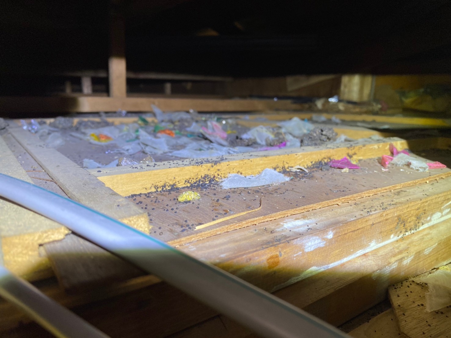 ハクビシンは同じ場所に「ため糞」をする習性があります。同じ場所に排泄をし続けると、木材が腐ったり部屋まで悪臭がしたりするので生活にも支障をきたします。さらに、ハクビシンの糞尿には、ウイルスや寄生虫が潜んでいるため危険です。