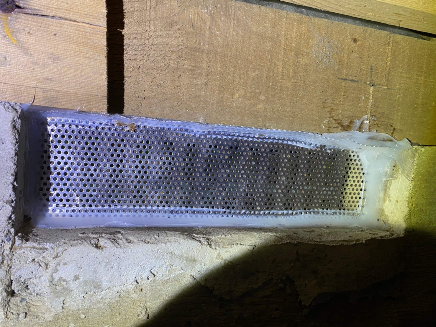 続いて、ハクビシンの再侵入を防ぐために、パンチングメタルや金網、コーキング剤などを用いて侵入経路の封鎖を行います。