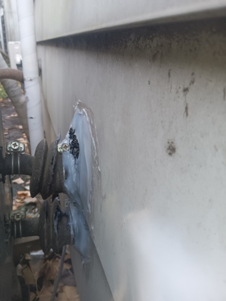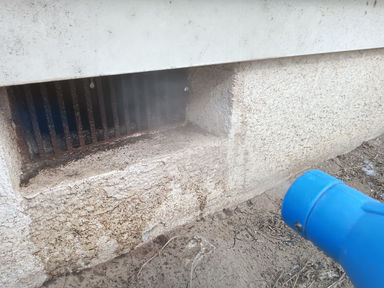 基礎の割れ目や外壁の隙間、配管引き込み部等がネズミの侵入経路と疑われました。