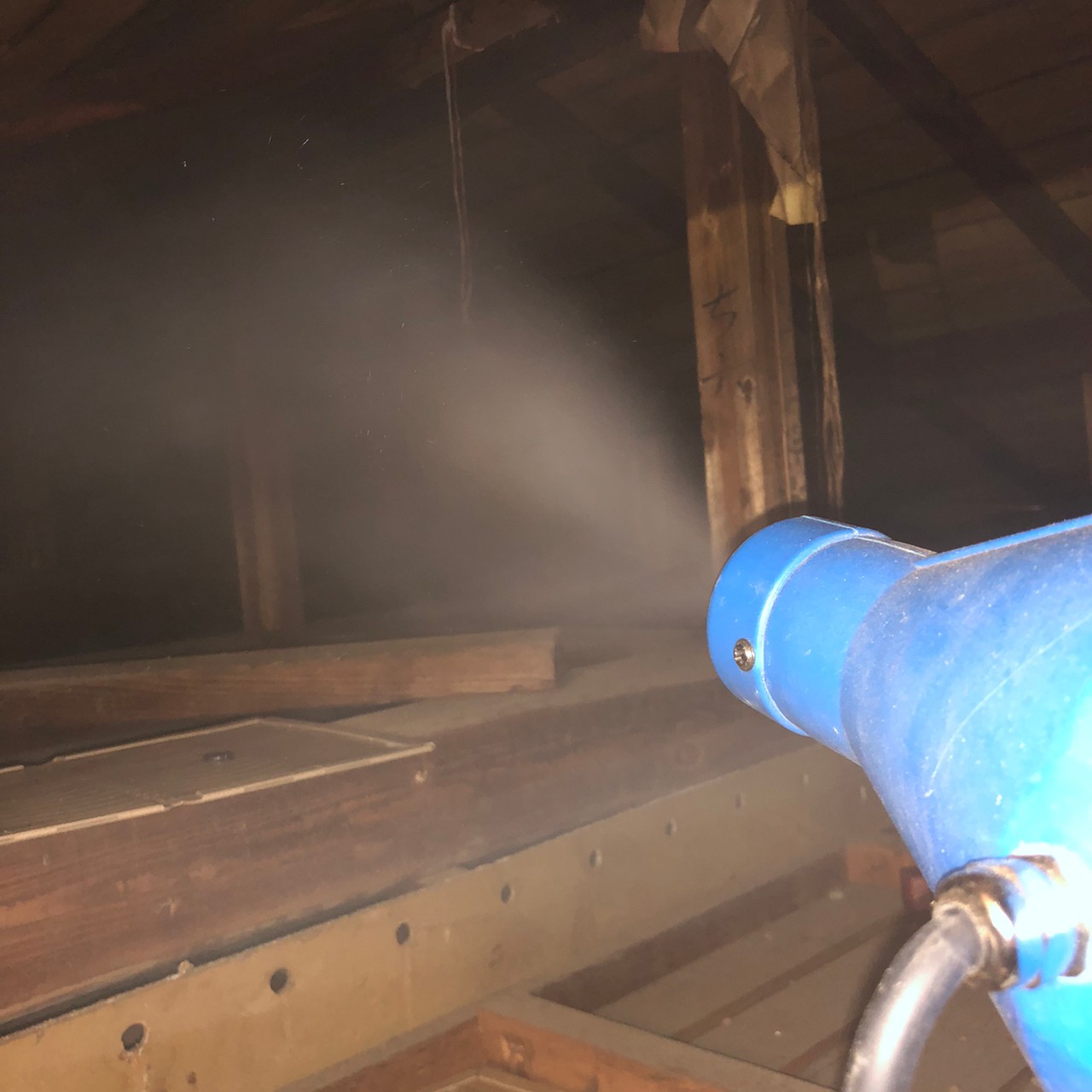 まずは、燻煙剤と呼ばれる薬剤を天井裏や床下に投入することで、ネズミを追い出していきます。