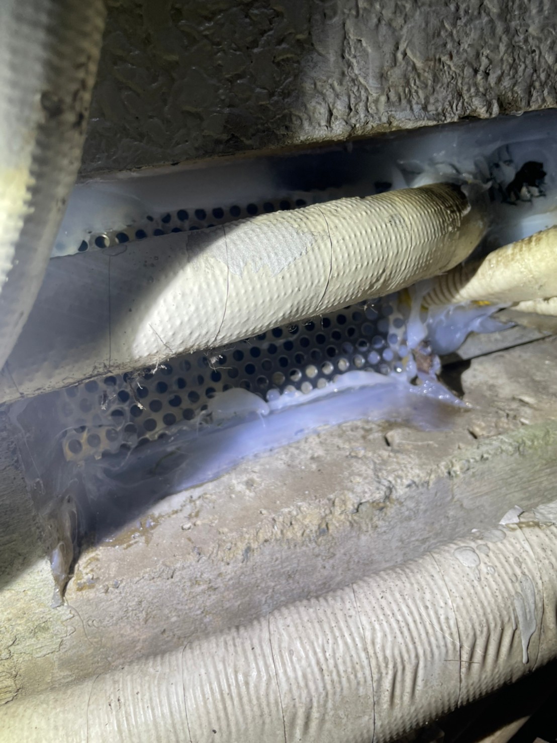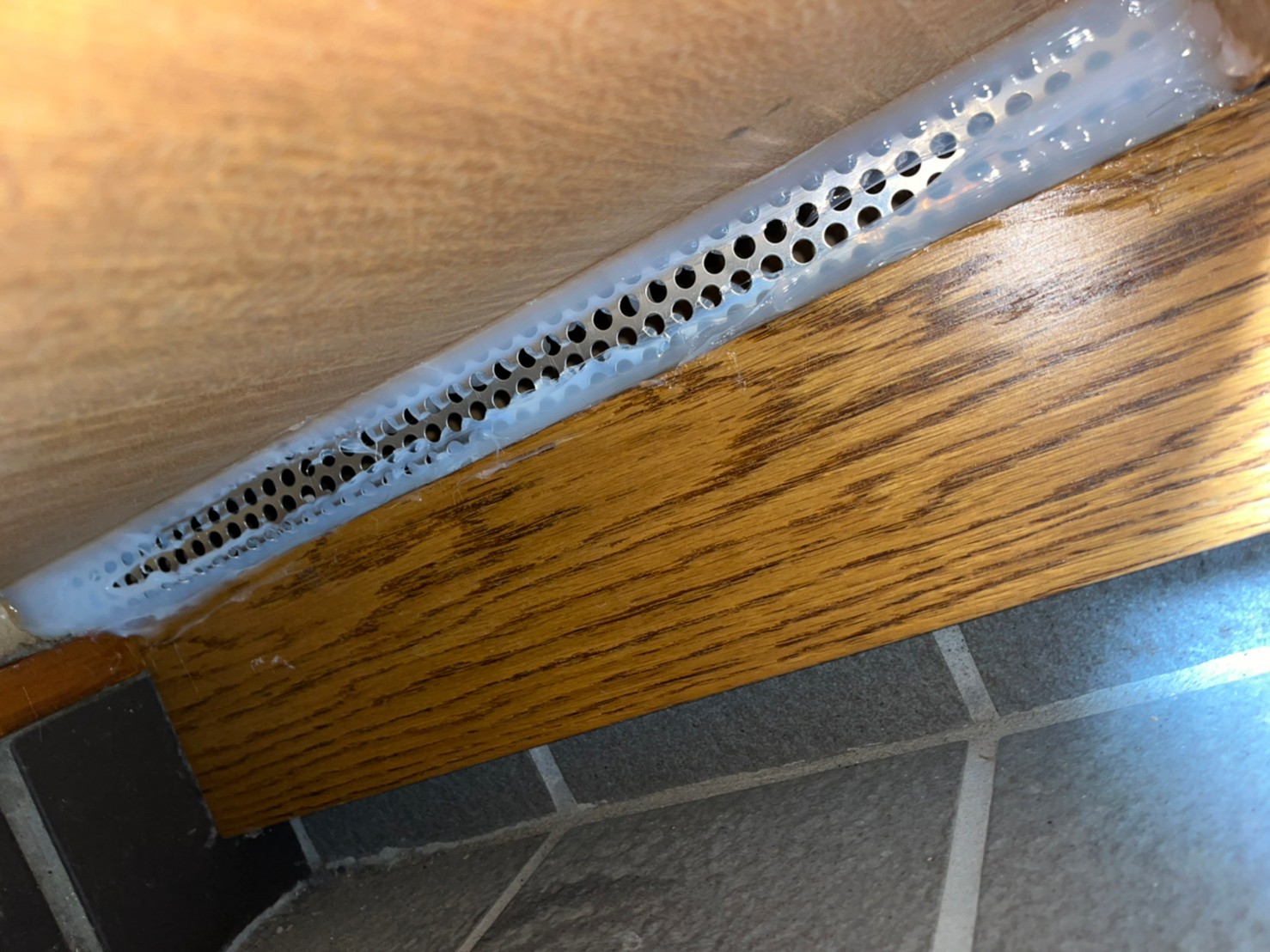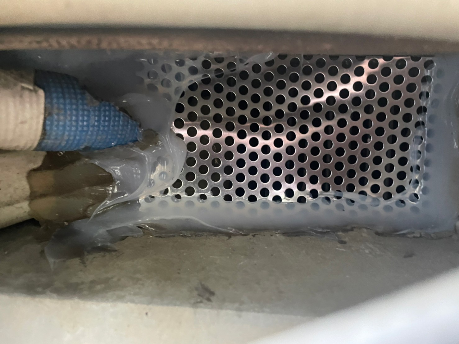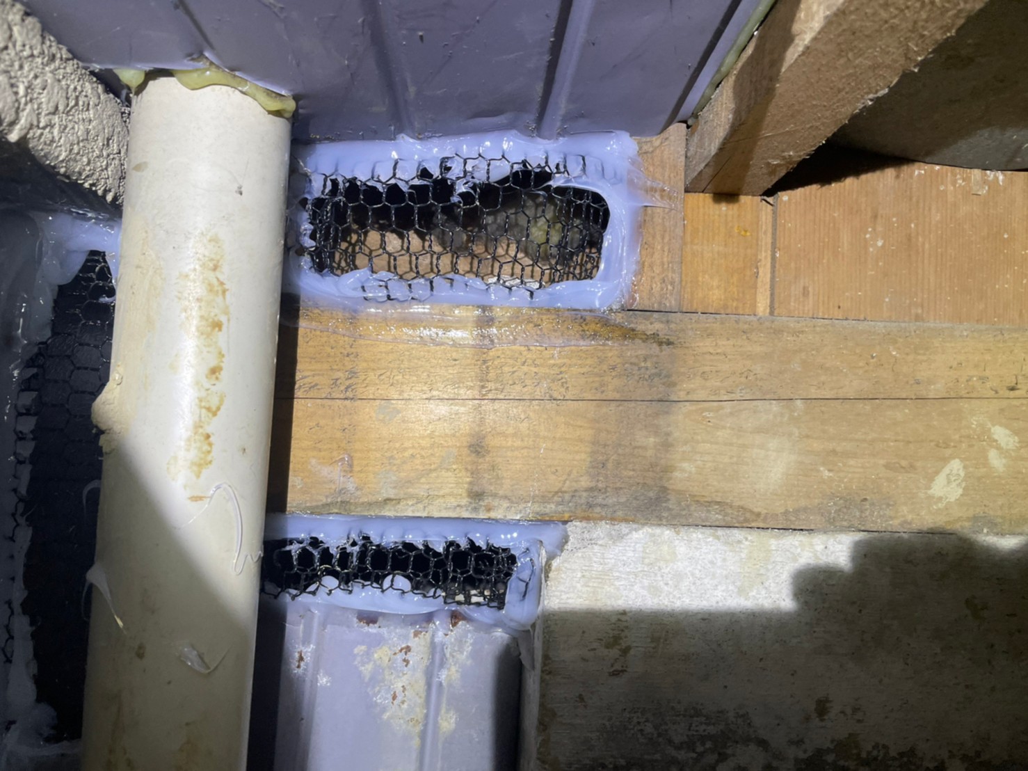 続いて、ネズミの再侵入を防ぐために、パンチングメタルや金網、コーキング剤などを用いて侵入経路の封鎖を行います。