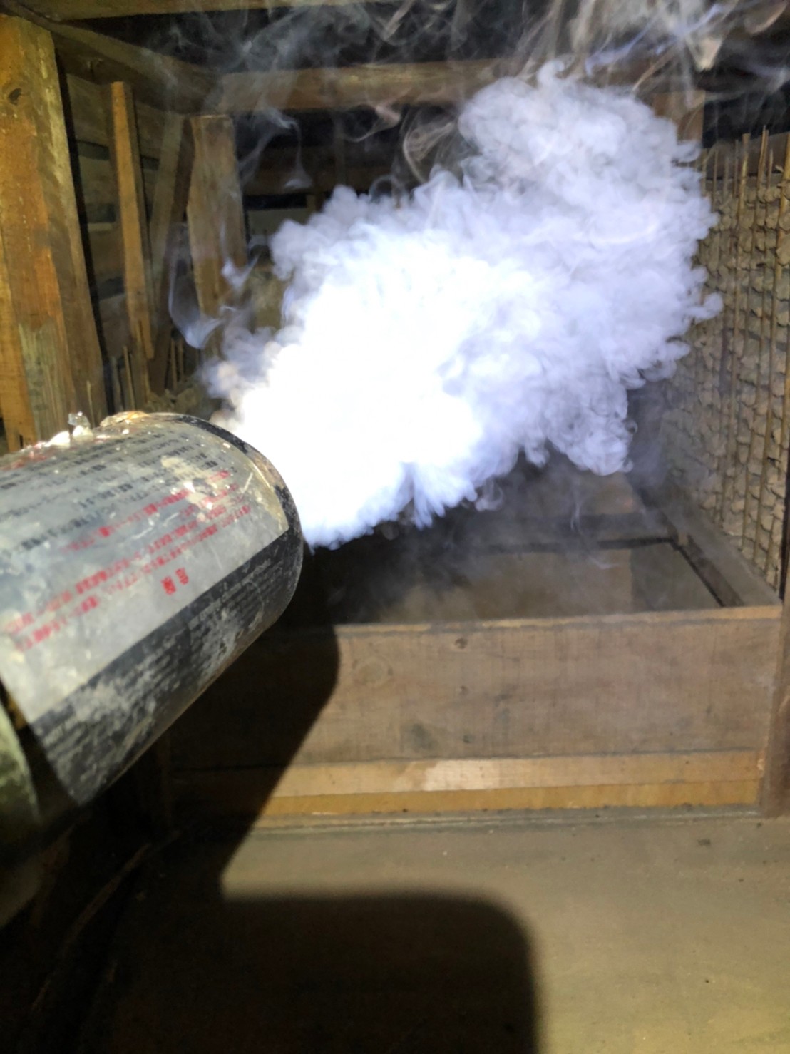 まずは、燻煙剤を使って屋内に潜んでいるハクビシンを追い出します。