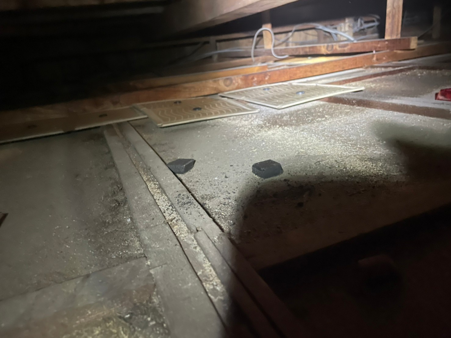 床下通風口やエアコン配管の隙間、屋根の隙間といった場所から、ハクビシン、アライグマが建物内へ侵入しており、耳障りな鳴き声や糞尿による天井のシミ、ノミ・ダニ被害などの理由からお問い合わせをいただきました。