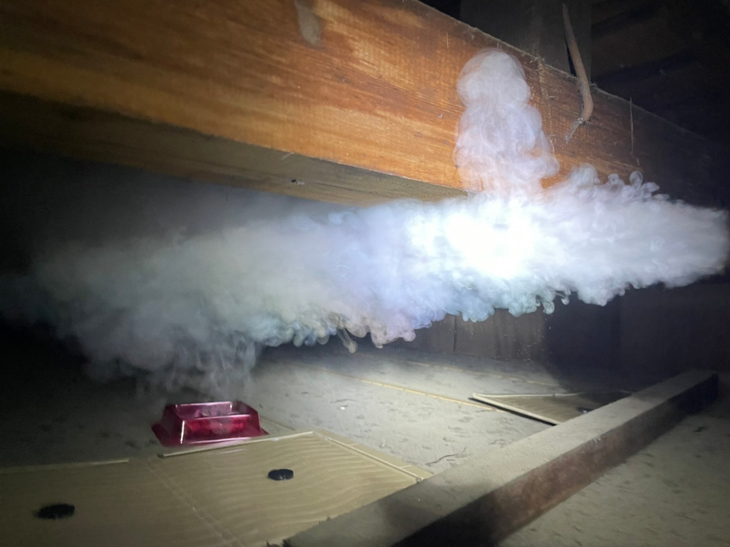 まずは、燻煙剤と呼ばれる薬剤を天井裏や床下に投入することで、ハクビシン、アライグマを追い出していきます。