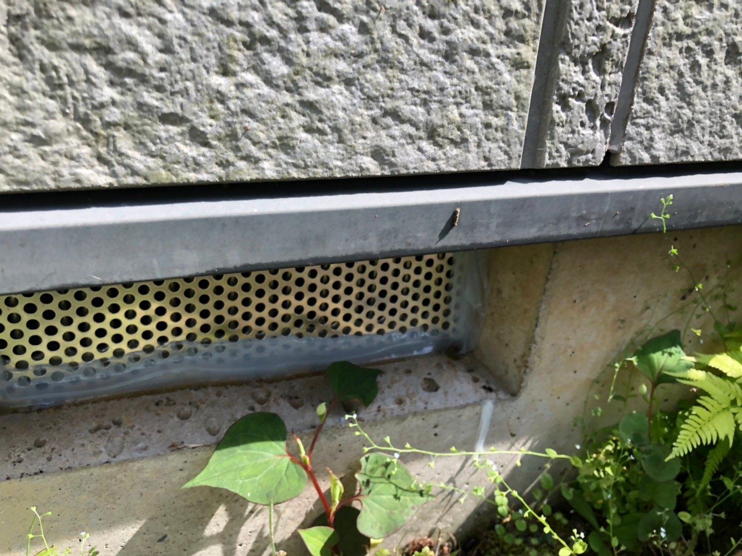 エアコン配管の隙間や外壁の隙間、床下通風口等がネズミの侵入経路と疑われました。