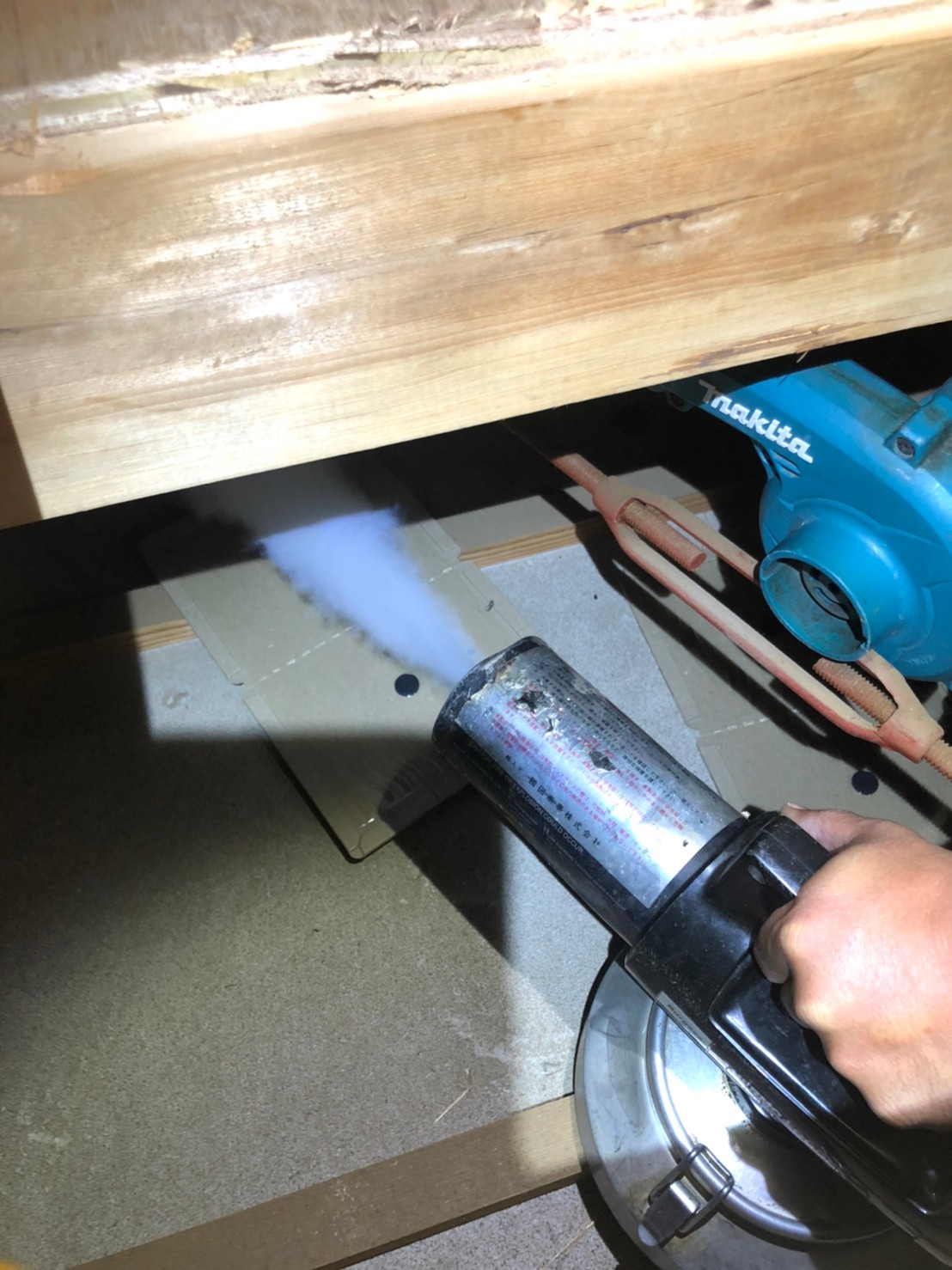 まずは、燻煙剤を使って屋内に潜んでいるネズミを追い出します。