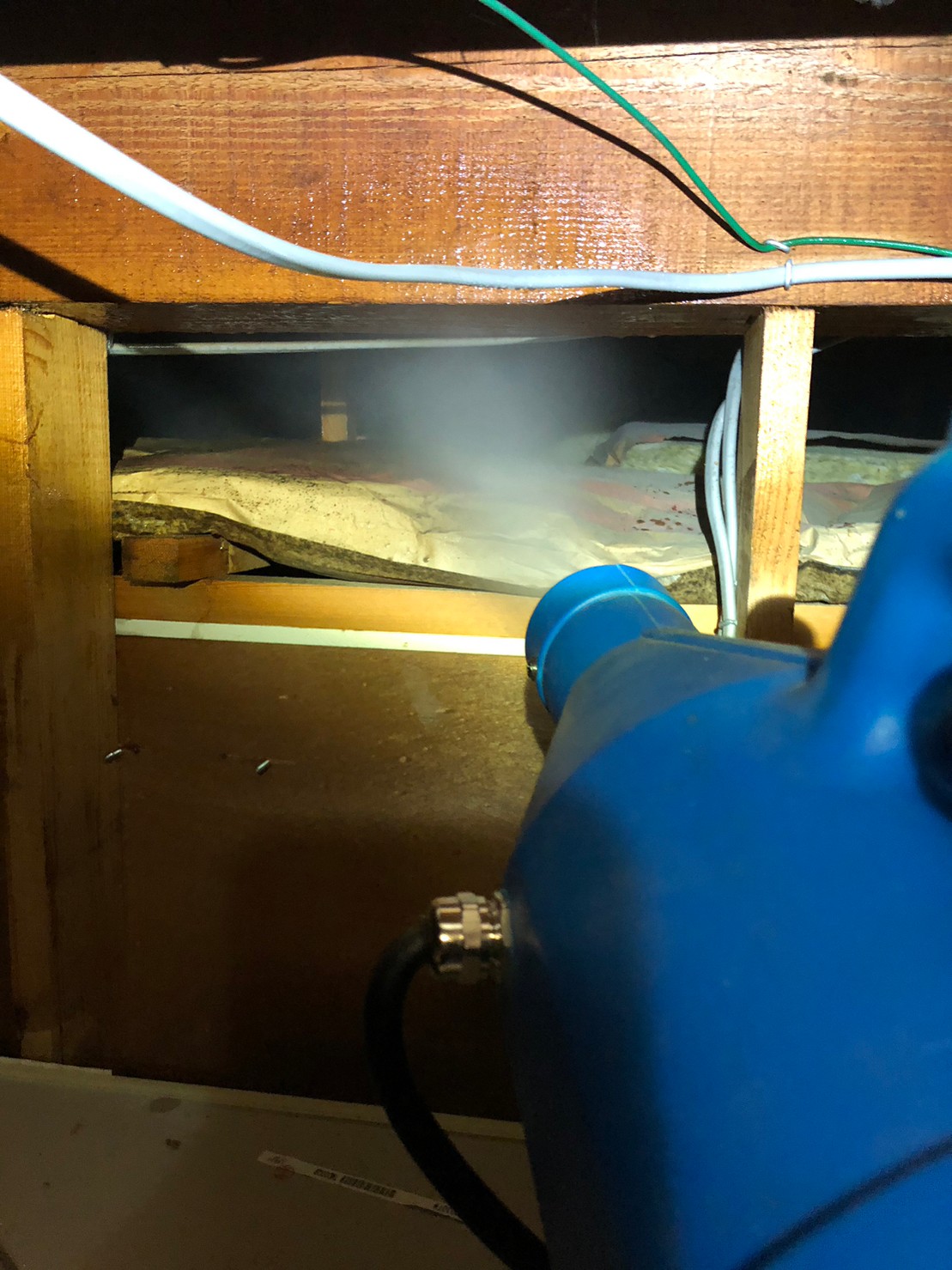 まずは、燻煙剤と呼ばれる薬剤を天井裏や床下に投入することで、ネズミを追い出していきます。
