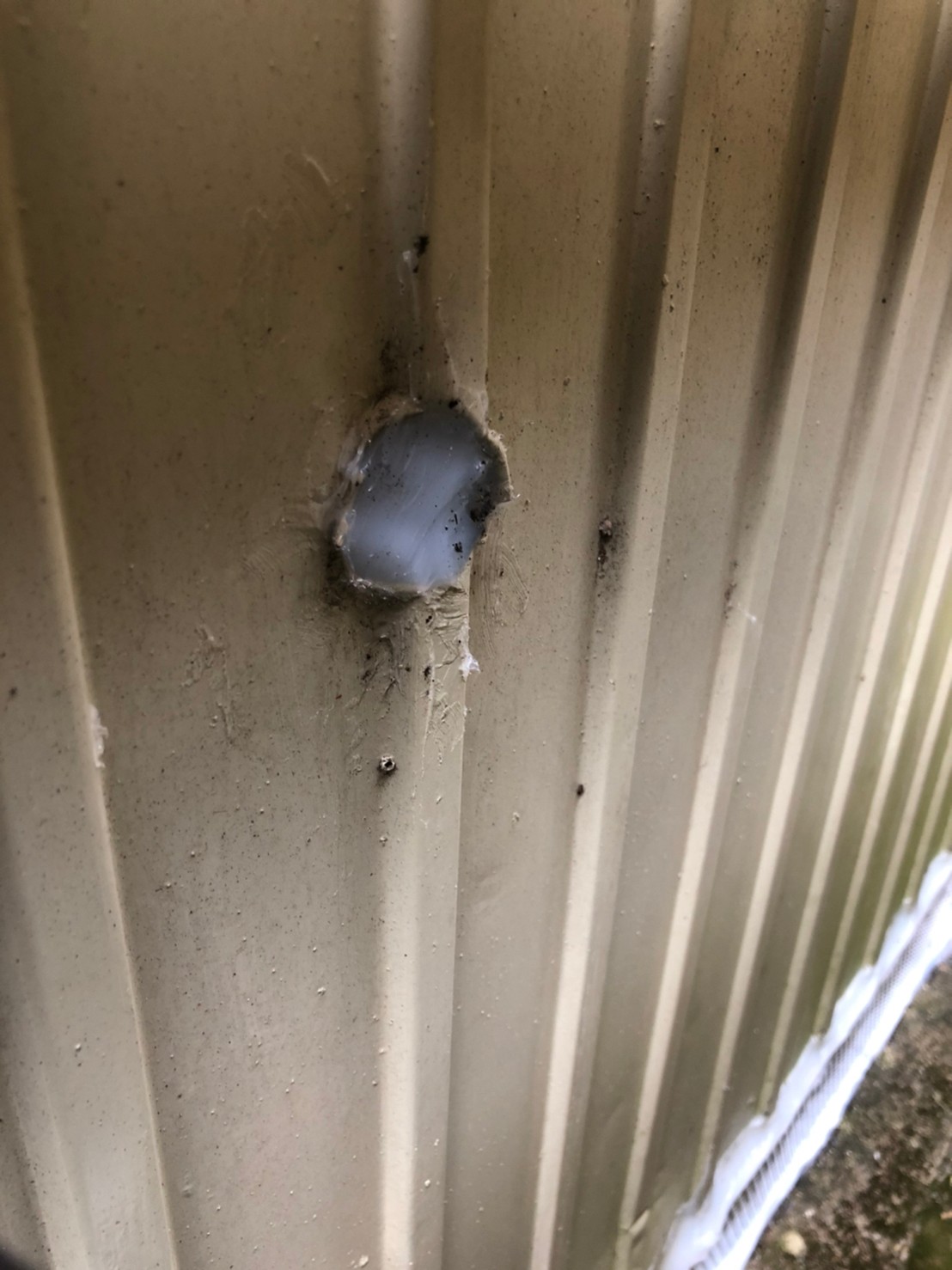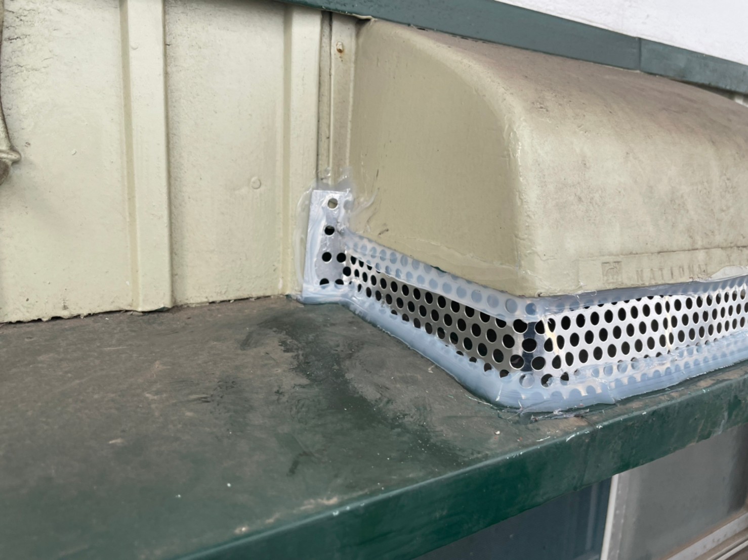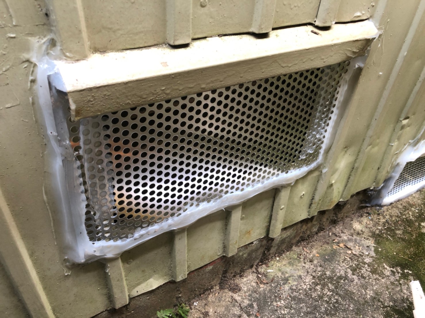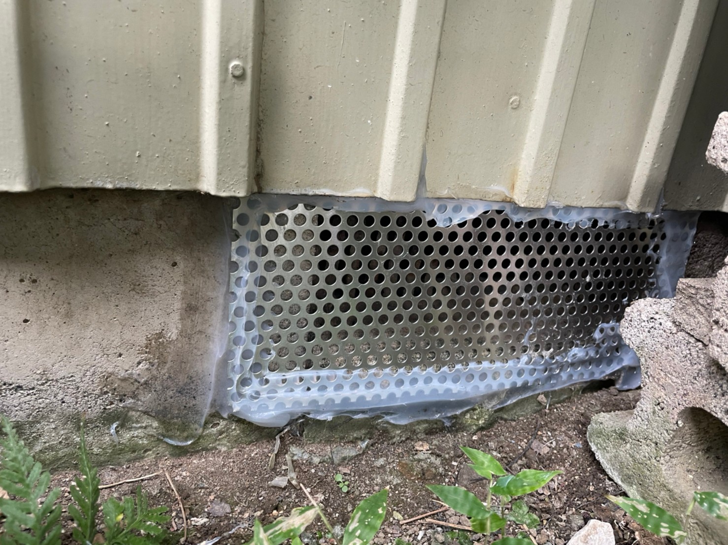 続いて、ネズミの再侵入を防ぐために、パンチングメタルや金網、コーキング剤などを用いて侵入経路の封鎖を行います。