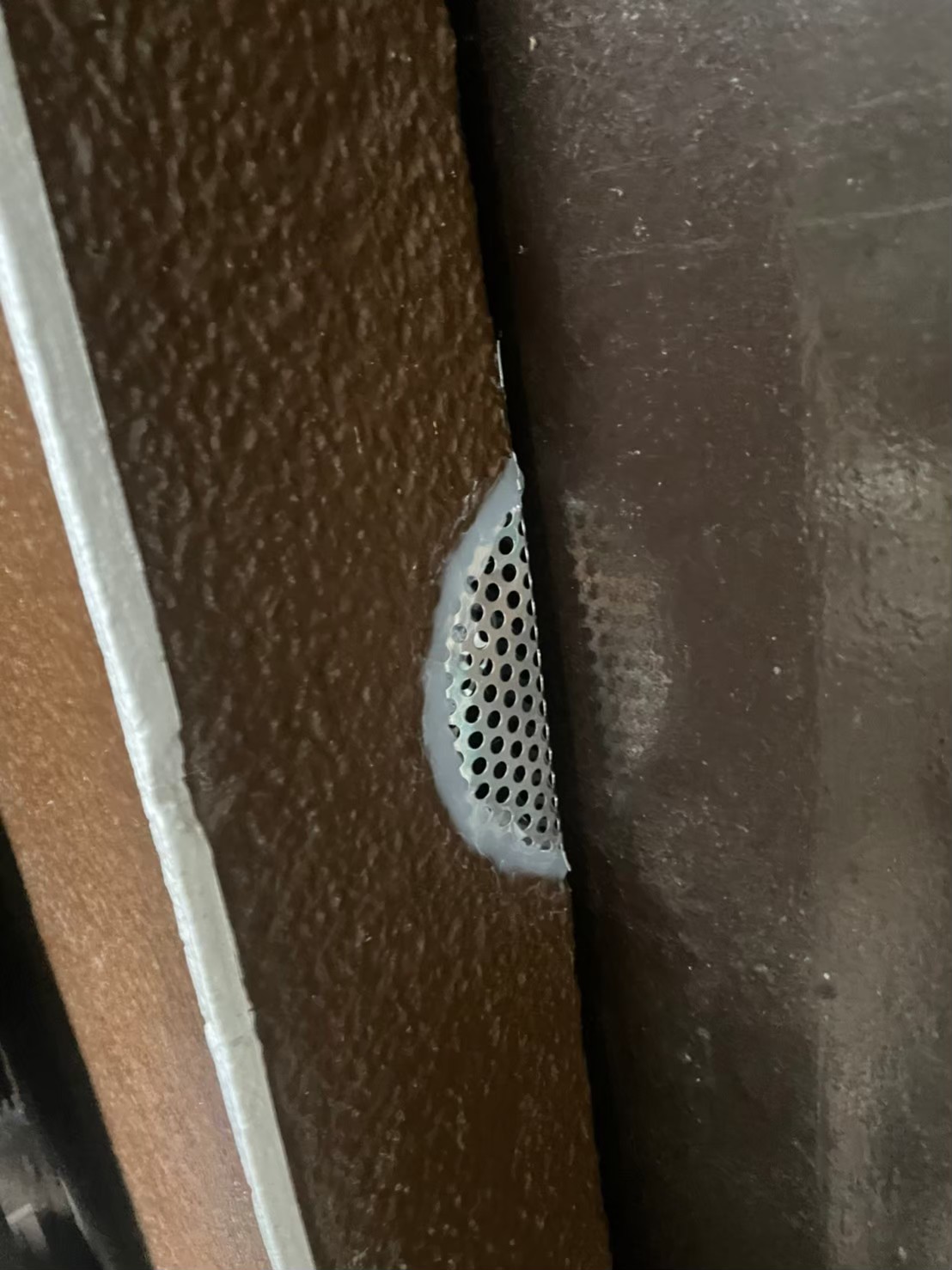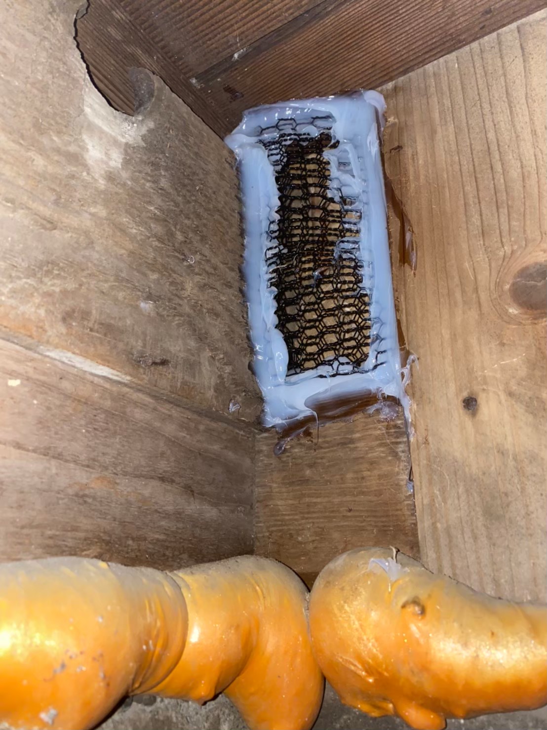 続いて、ネズミの再侵入を防ぐために、パンチングメタルや金網、コーキング剤などを用いて侵入経路の封鎖を行います。