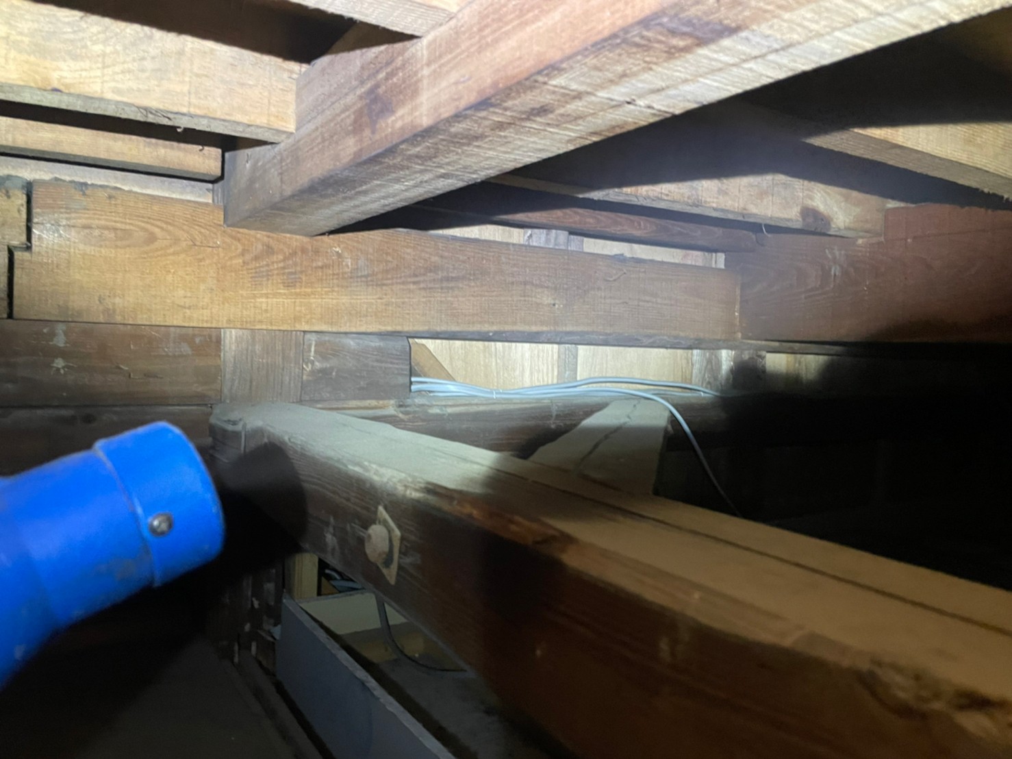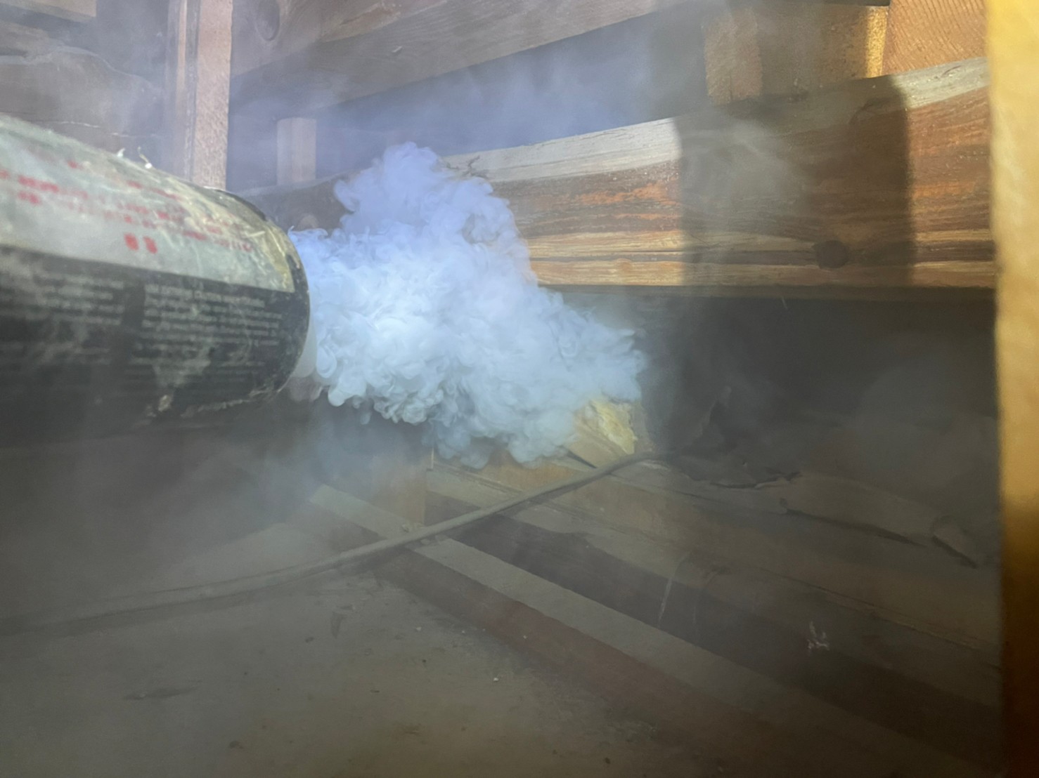 まずは、燻煙剤と呼ばれる薬剤を天井裏や床下に投入することで、ネズミ、アライグマを追い出していきます。