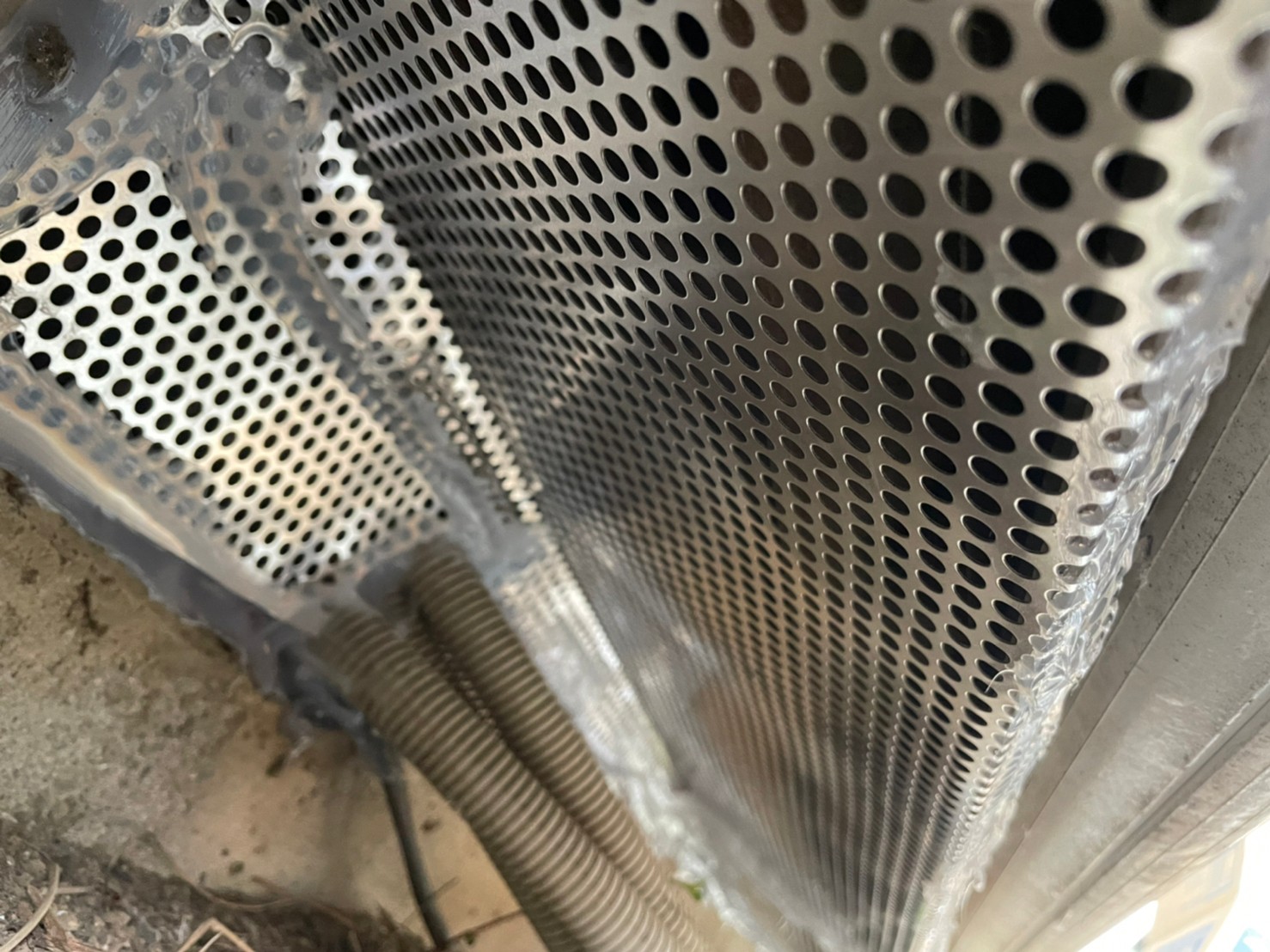 続いて、ネズミ、アライグマの再侵入を防ぐために、パンチングメタルや金網、コーキング剤などを用いて侵入経路の封鎖を行います。
