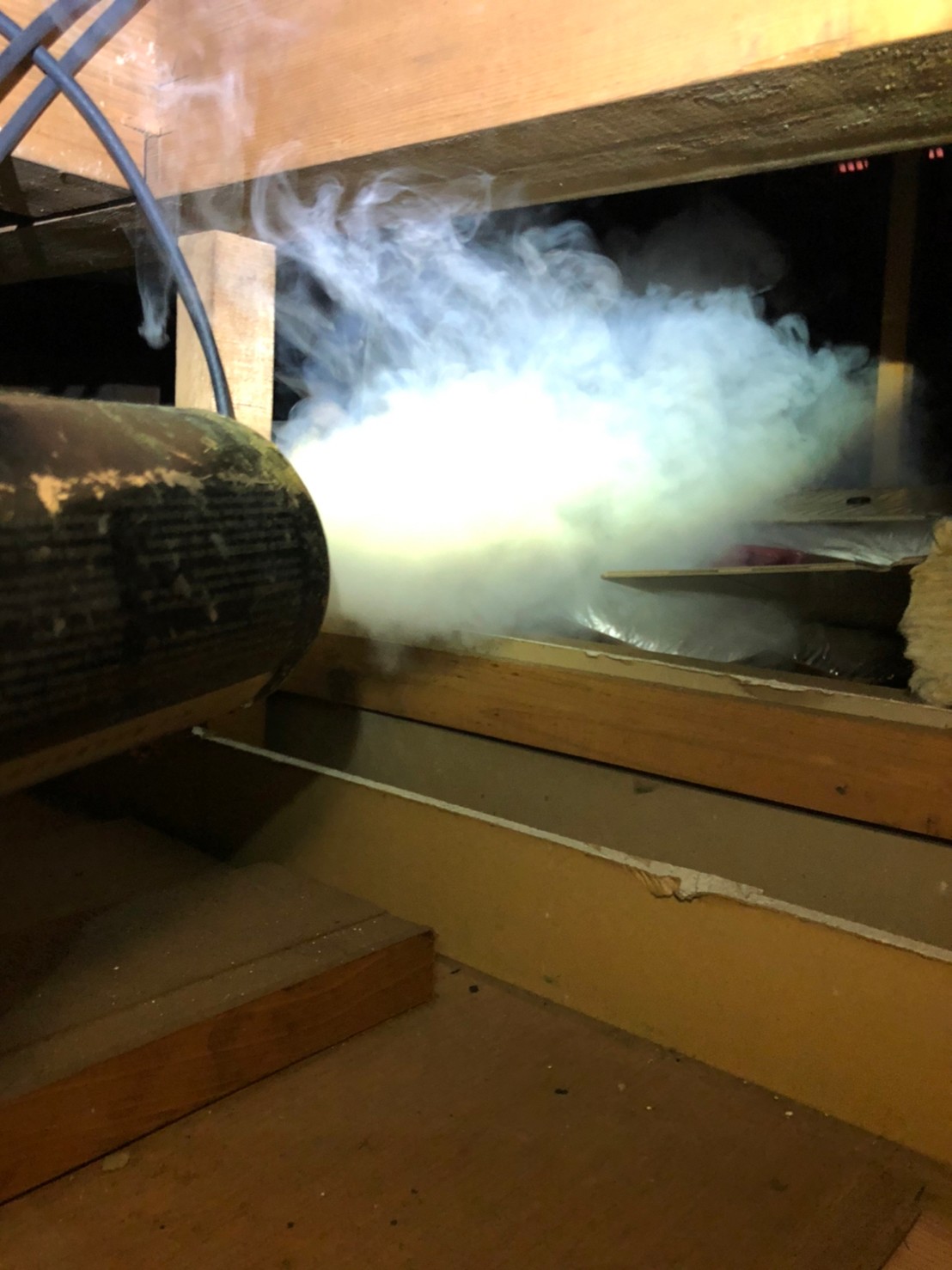 まずは、燻煙剤と呼ばれる薬剤を天井裏や床下に投入することで、ネズミを追い出していきます。