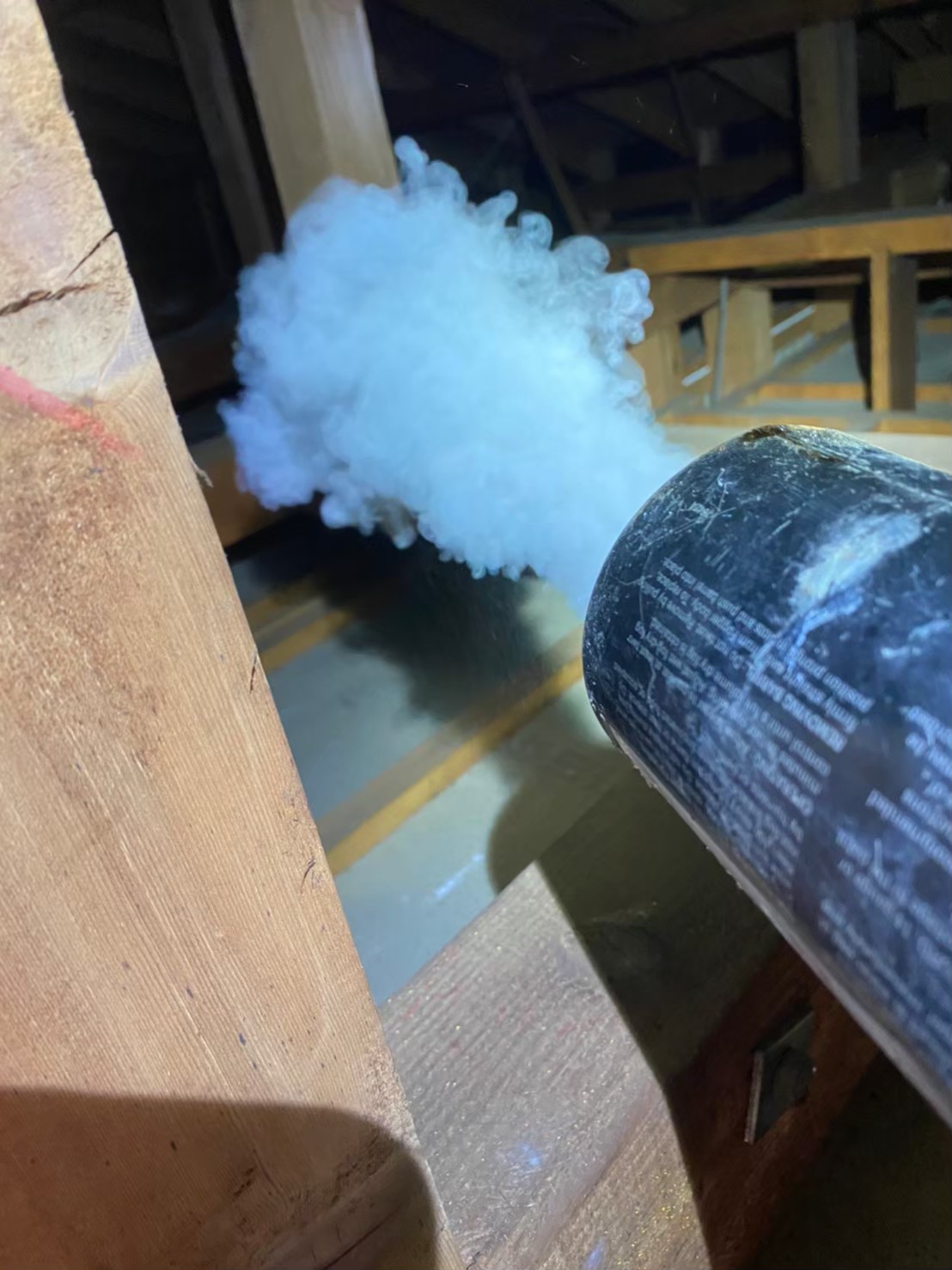 まずは、燻煙剤と呼ばれる薬剤を天井裏や床下に投入することで、ハクビシンを追い出していきます。