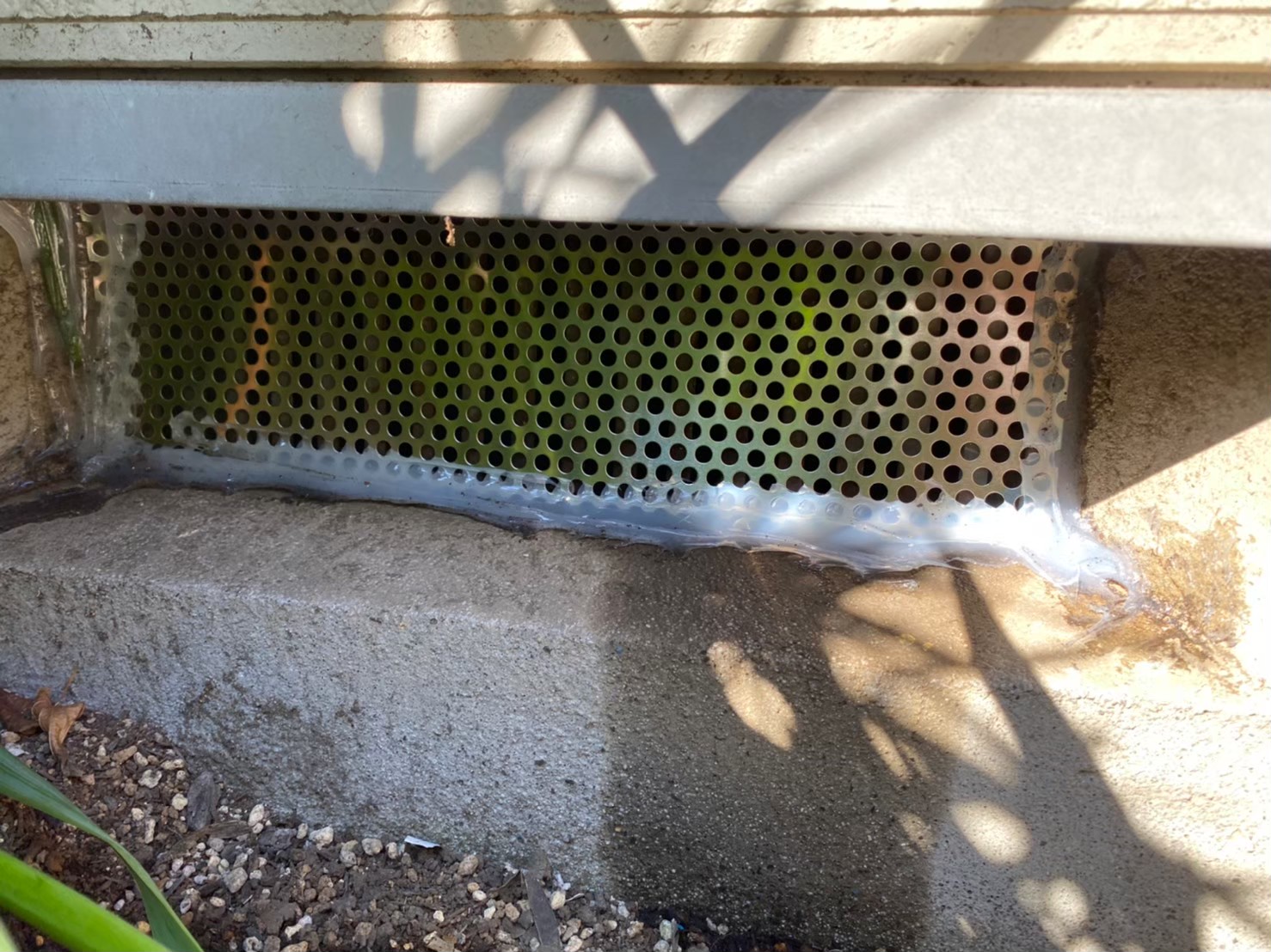 続いて、ハクビシンの再侵入を防ぐために、パンチングメタルや金網、コーキング剤などを用いて侵入経路の封鎖を行います。