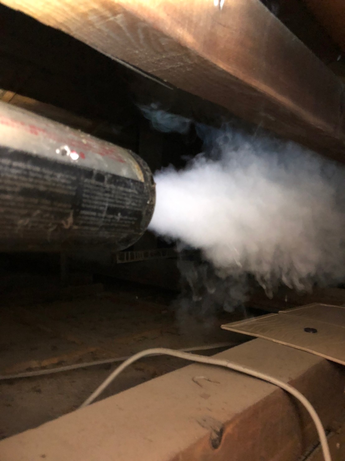 まずは、燻煙剤と呼ばれる薬剤を天井裏や床下に投入することで、ハクビシンを追い出していきます。