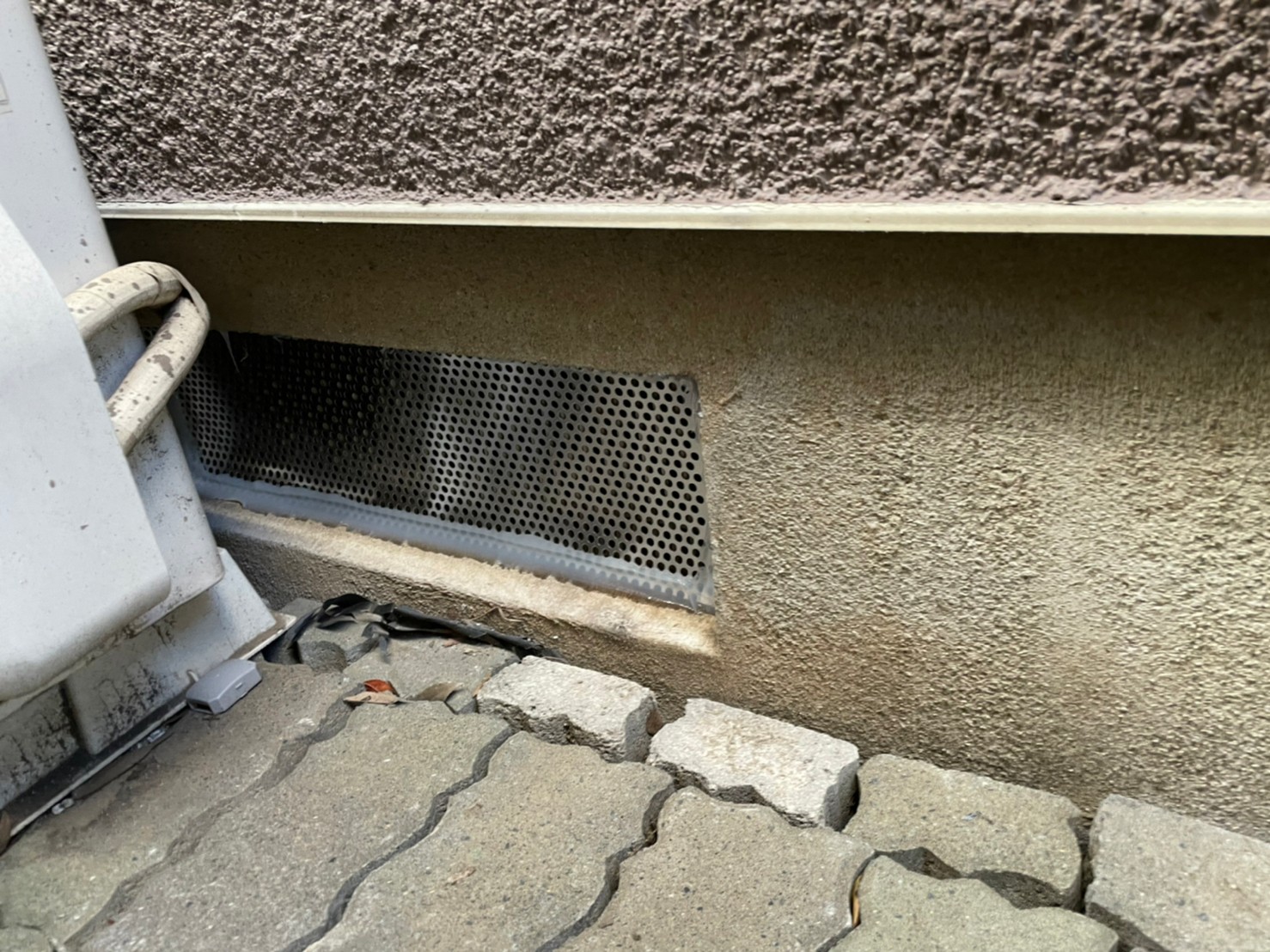 床下通風口やエアコン配管の隙間といった場所から、ネズミが建物内へ侵入しており、騒音被害や糞尿による悪臭、衛生面での不安などの理由からお問い合わせをいただきました。