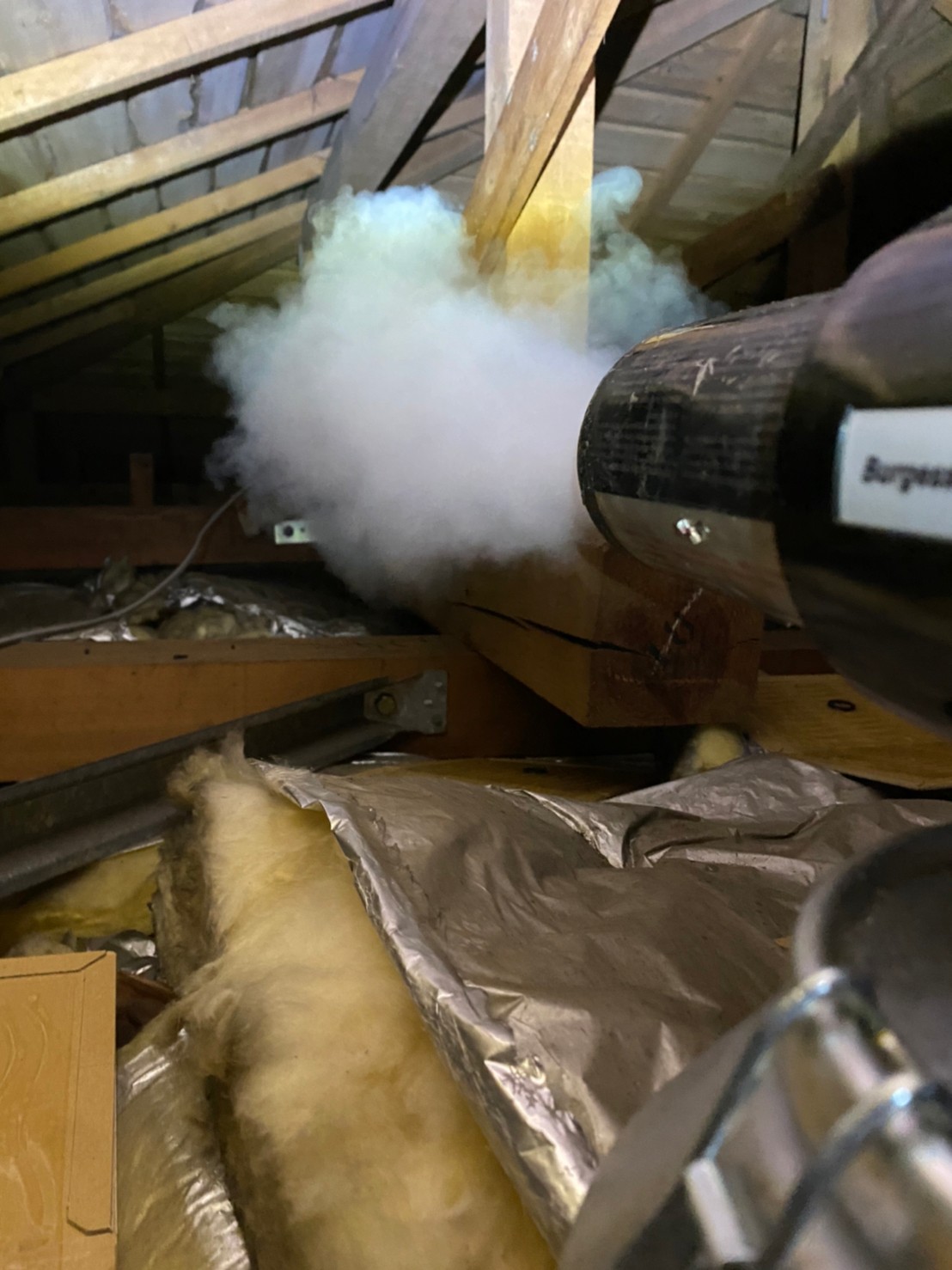 まずは、燻煙剤と呼ばれる薬剤を天井裏や床下に投入することで、ネズミを追い出していきます。
